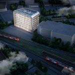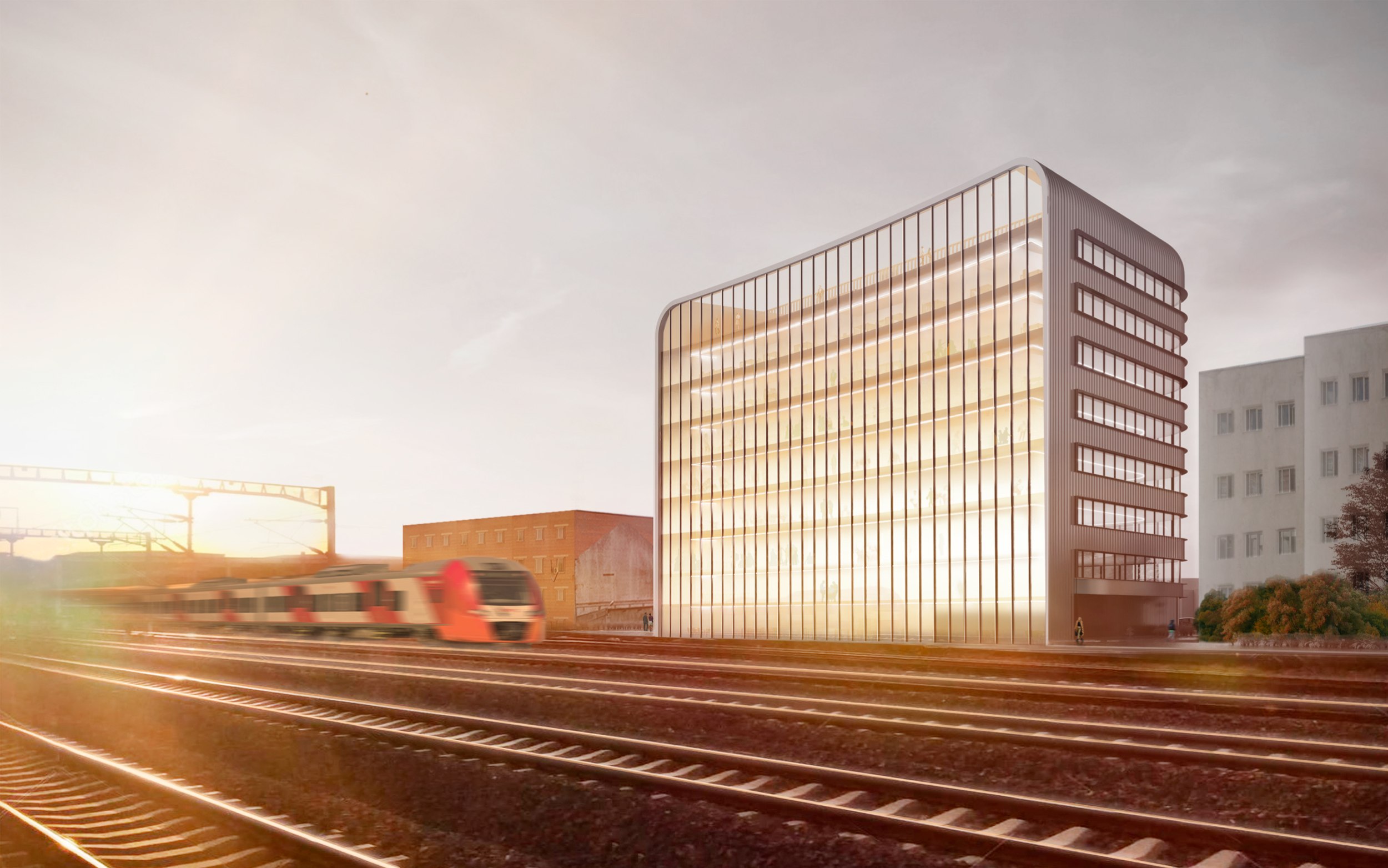 Там с трех сторон фальцевый фасад обтекаемой формы, как скорлупа или ракушка – в духе стримлайна или аэрострима. А четвертый фасад, обращенный к железнодорожным путям, решен как своего рода витрина, обращенная к поездам. Должен сказать, это эффектное зрелище, я и сам был бы не против работать в таком офисе. Rail.a занимается проектированием мостов и дорог, так что тема транспорта для них – близкая.