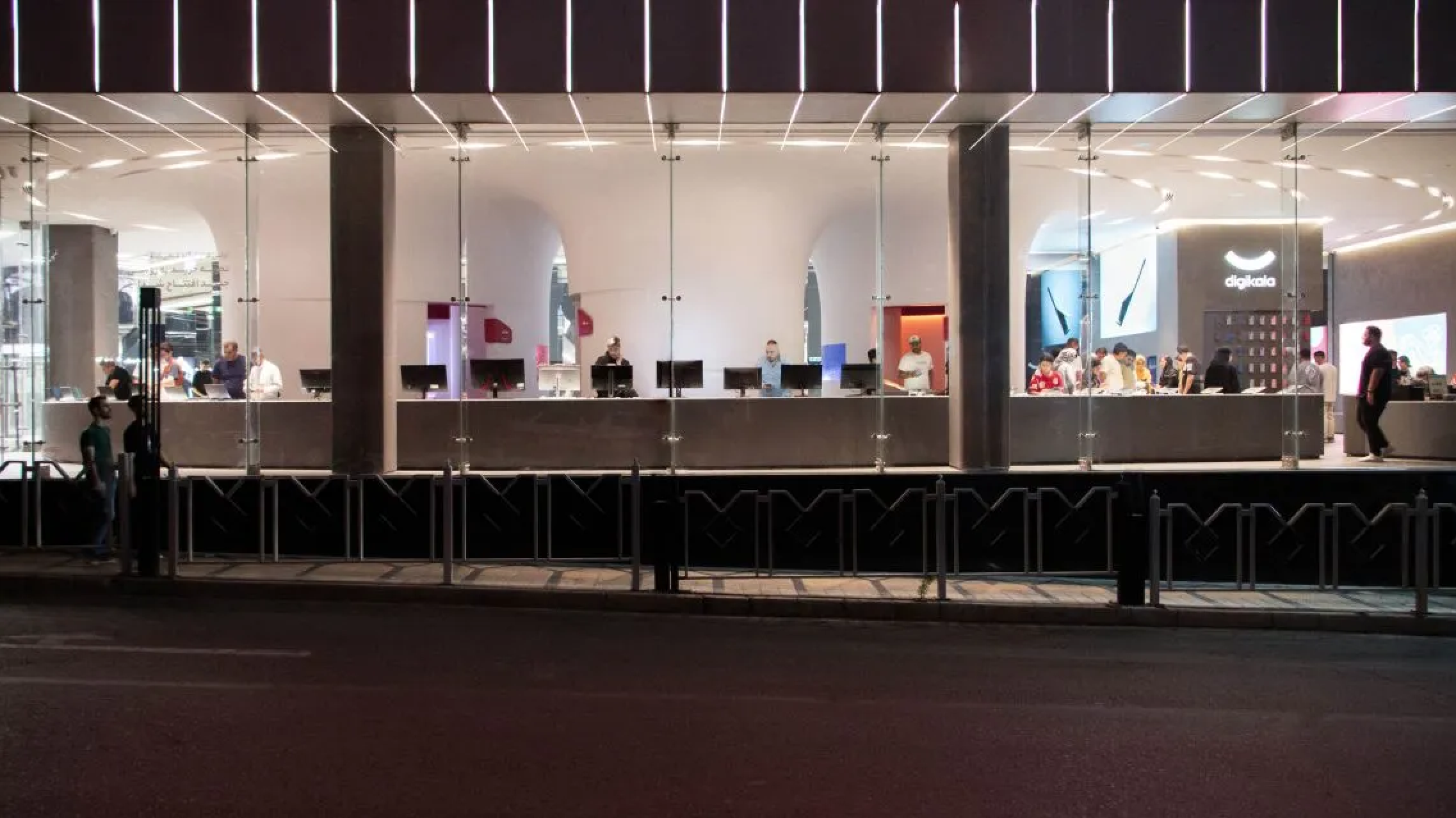 Крупнейший маркетплейс Ирана Digikala, специализирующийся на цифровых девайсах и насчитывающий более 30 миллионов уникальных посетителей в месяц, открыл в Тегеране свой первый флагманский офлайн-магазин. Авторы интерьера постарались переосмыслить опыт покупателя, дав ему возможность интерактивного взаимодействия с товарами через «порталы впечатлений» в мультисенсорной среде. Интерактивные настенные проекции распознают выбранные товары, предоставляя персонализированную информацию и демонстрируя на соседних экранах их возможности. Это выглядит почти как кадр из «Призрака в доспехах», соединенный с вселенной «Звездных войн».