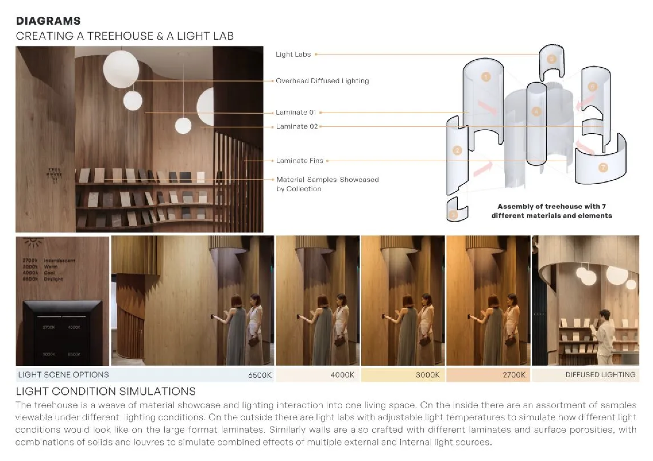 Сингапурская компания EDL, производящая широкий спектр отделочных материалов, в первую очередь высококачественный ламинат высокого давления (HPL), поставила перед авторами интерьера шоурума задачу вдохновлять посетителей на творческие эксперименты. Для этого в пространстве галереи предусмотрено множество интерактивных арт-объектов, выполненных из материалов компании.