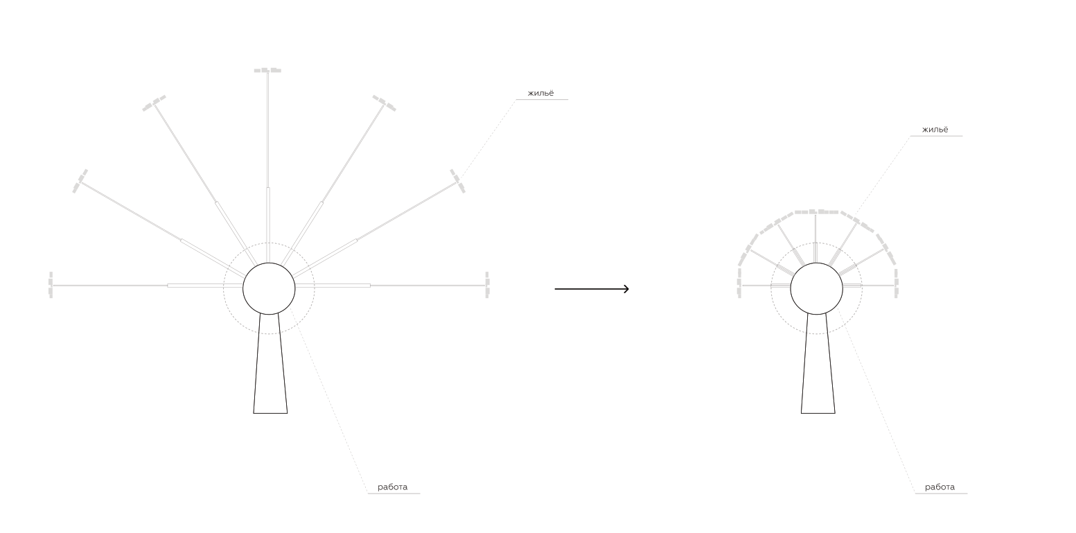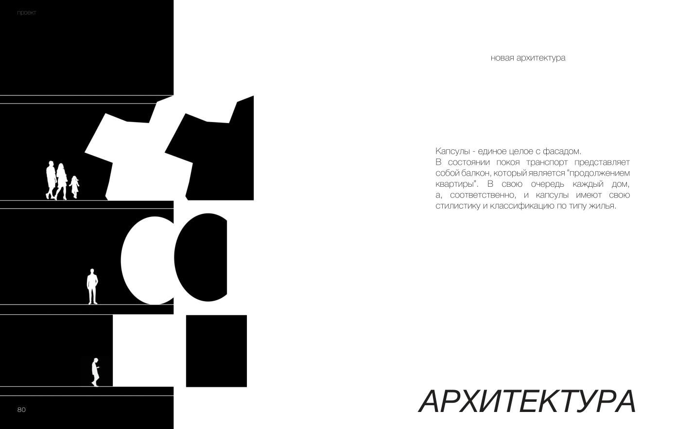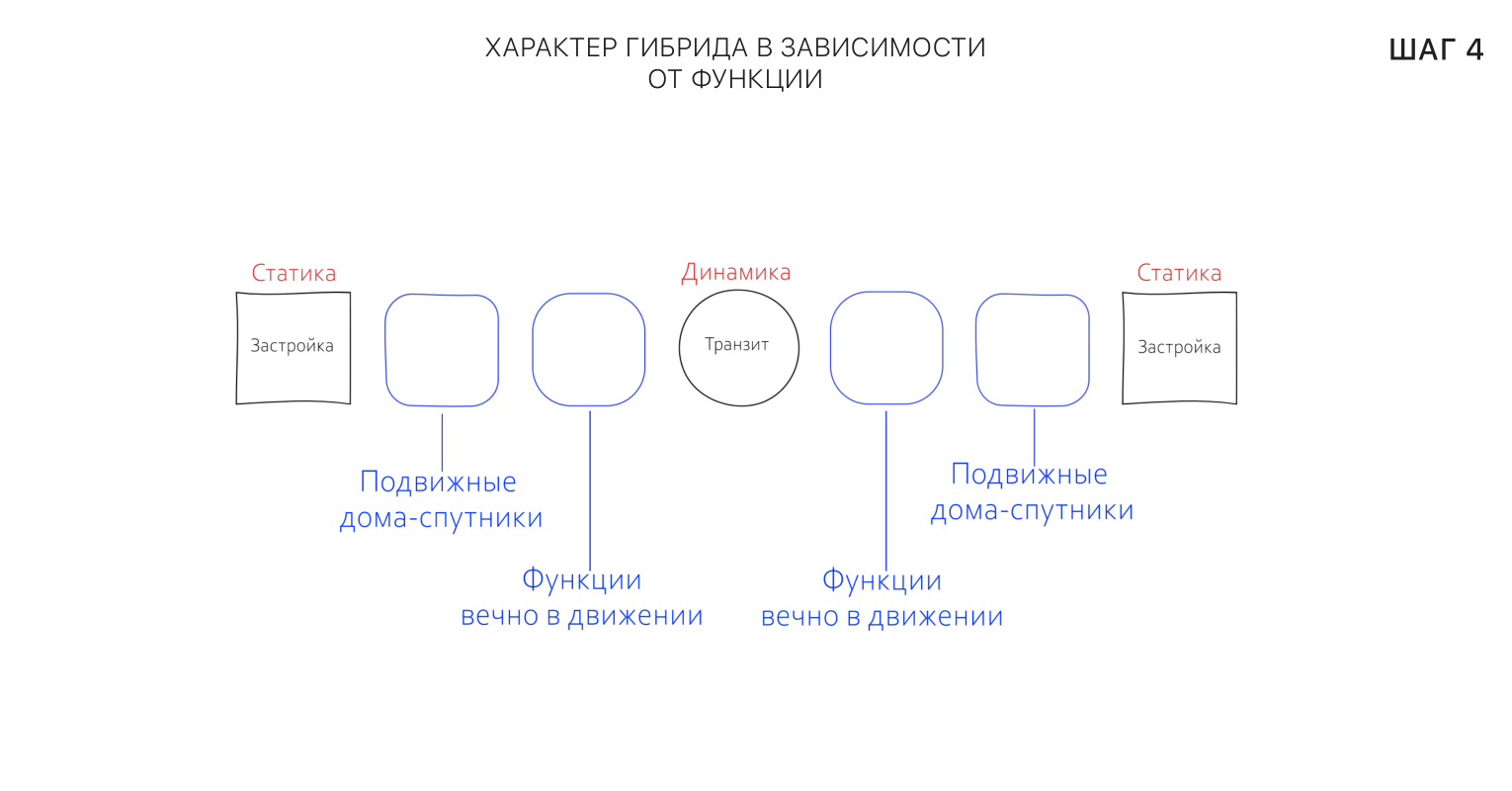 Проблему бессмысленности потраченного времени и зависимости от преград в городе решаем, превращая часть здания в разносценарный воздушный транспорт, который перемещается прямолинейно.