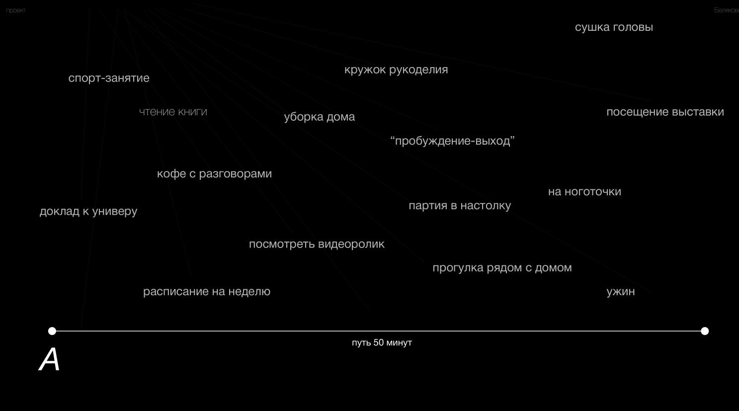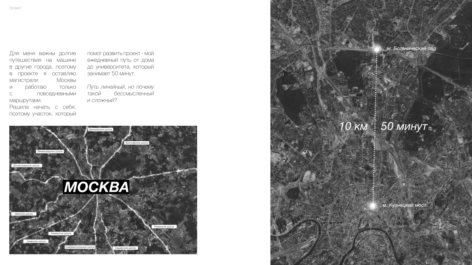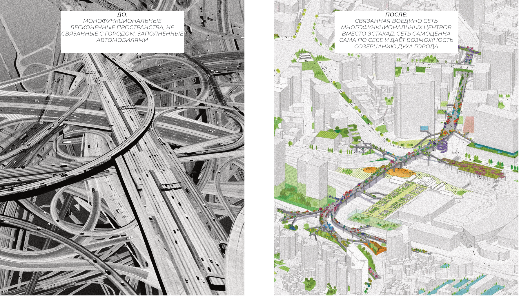 Смоделировать, как может выглядеть город при отказе от традиционного понимания дороги. Предложить новые типологии передвижения, сетей и транспортного взаимодействия.