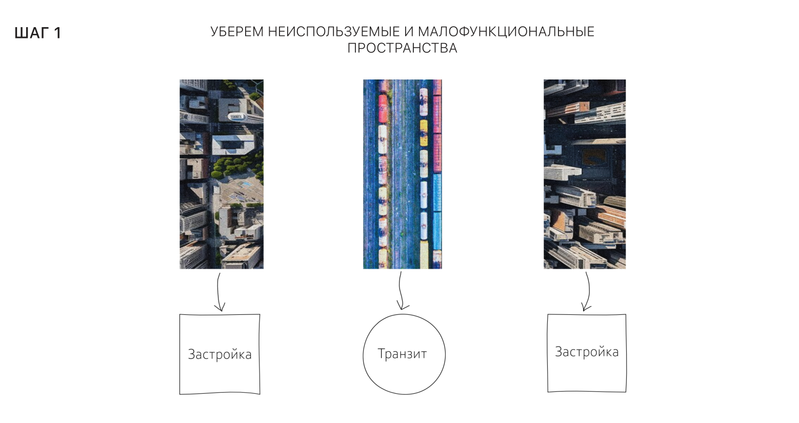 Превращение транспортных коридоров в многофункциональные городские пространства, сочетающие перемещение, отдых, природу и сервисы. Сокращение доли территорий, предназначенных исключительно для транспорта, и интеграция их в активную городскую ткань.