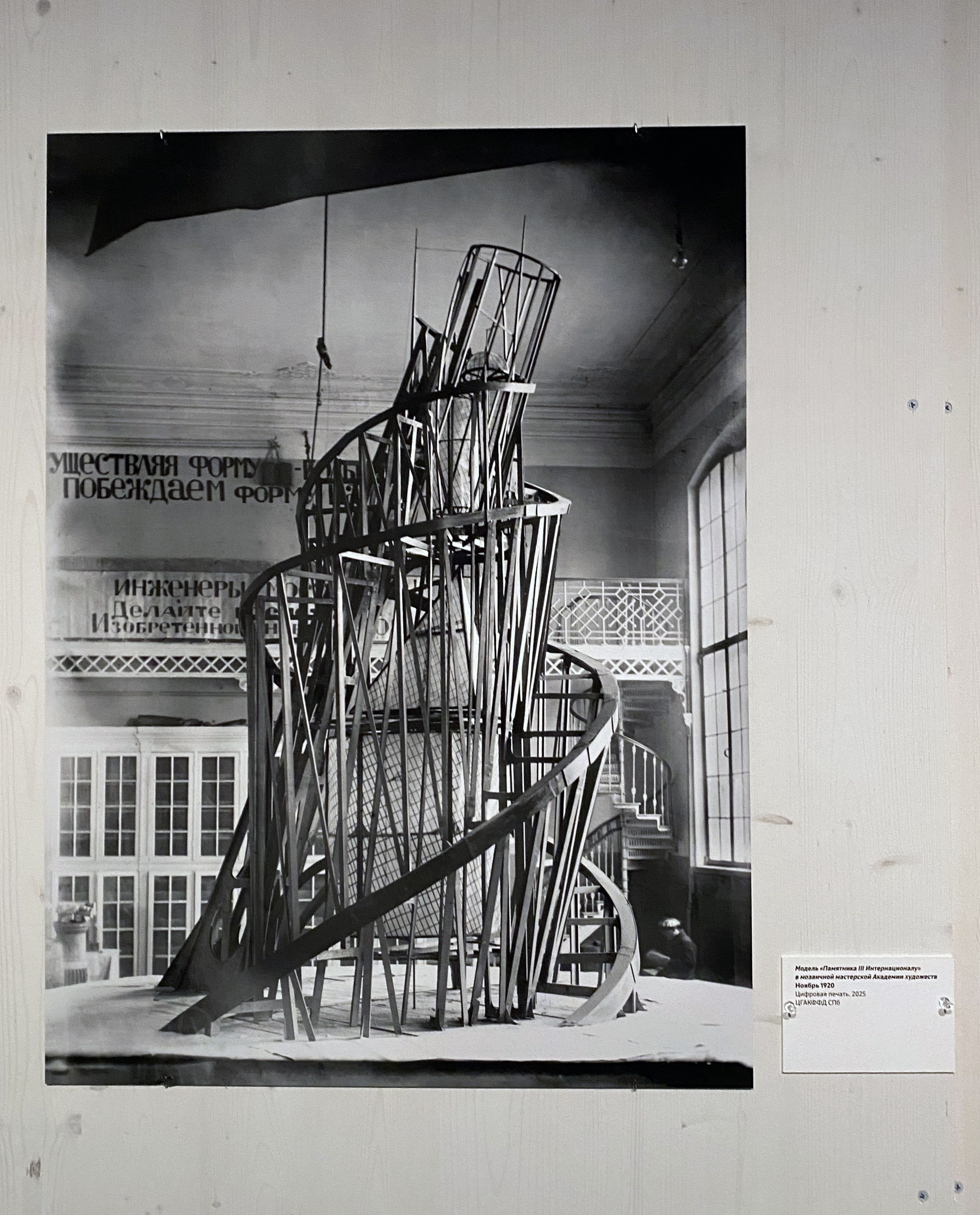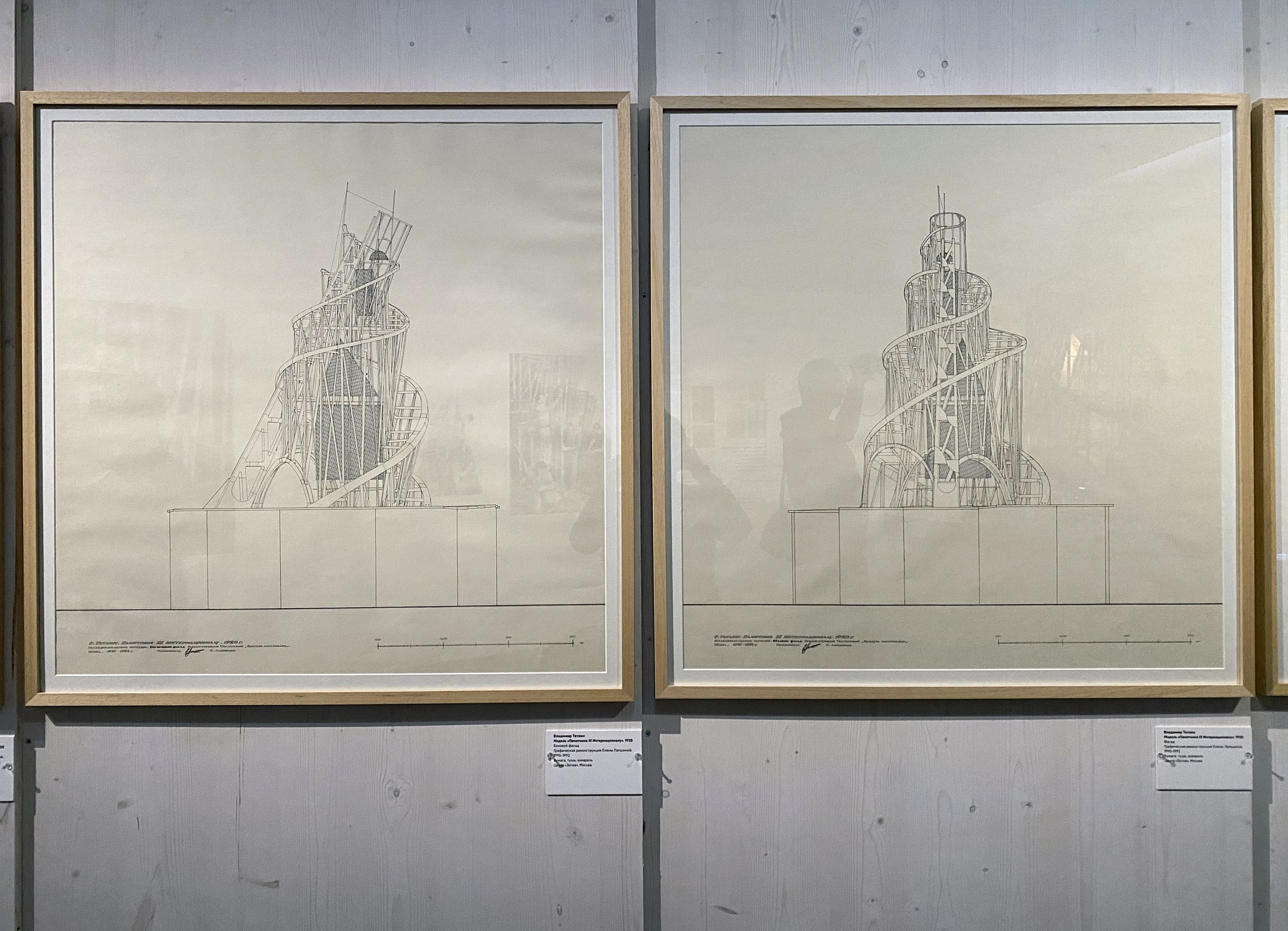 В одном представлены авангардные живописные работы начала творческой деятельности Татлина 1910-х годов, в другом – его поиски в сфере предметного дизайна, сценического искусства и так далее. И как особый подарок в кажущемся бесконечном круговороте залов предстают два из них: один отдан модели «Памятника III Интернационалу» (1920, реконструкция 1987–1991; авторы реконструкции: Дмитрий Димаков, Елена Лапшина, Игорь Федотов), а другой – единственному сохранившемуся образцу безмоторного летательного аппарата «Летатлин». Оба объекта, хоть и достаточно комфортно располагаясь в пространстве залов, ломают привычное представление о времени и пространстве и переносят зрителя в эпоху их создания, когда они казались частью нового, рождающегося здесь и сейчас будущего.