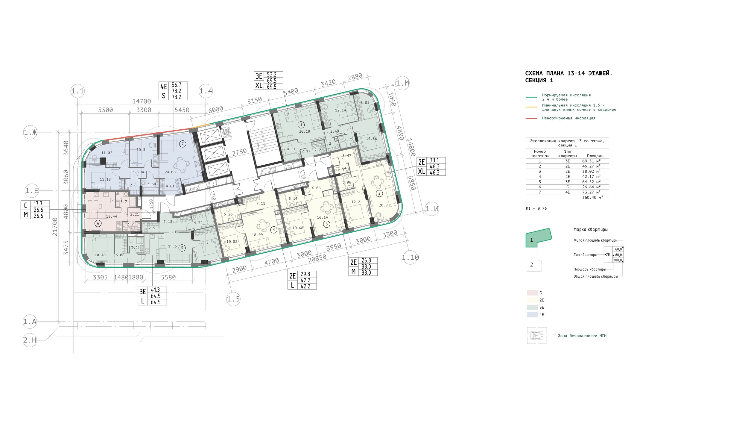 Только 10% от всех квартир комплекса составят студии. Предусмотрены и необычные форматы: квартиры с местом под дровяной камин, террасами, панорамным остеклением. Паркинг в стилобате вмещает 60 автомобилей, а также ряд кладовых помещений площадью от 2 до 7 м2. «Сквозной» дизайн коснется лобби и других мест общего пользования, где тема ткачества получит дополнительное развитие.