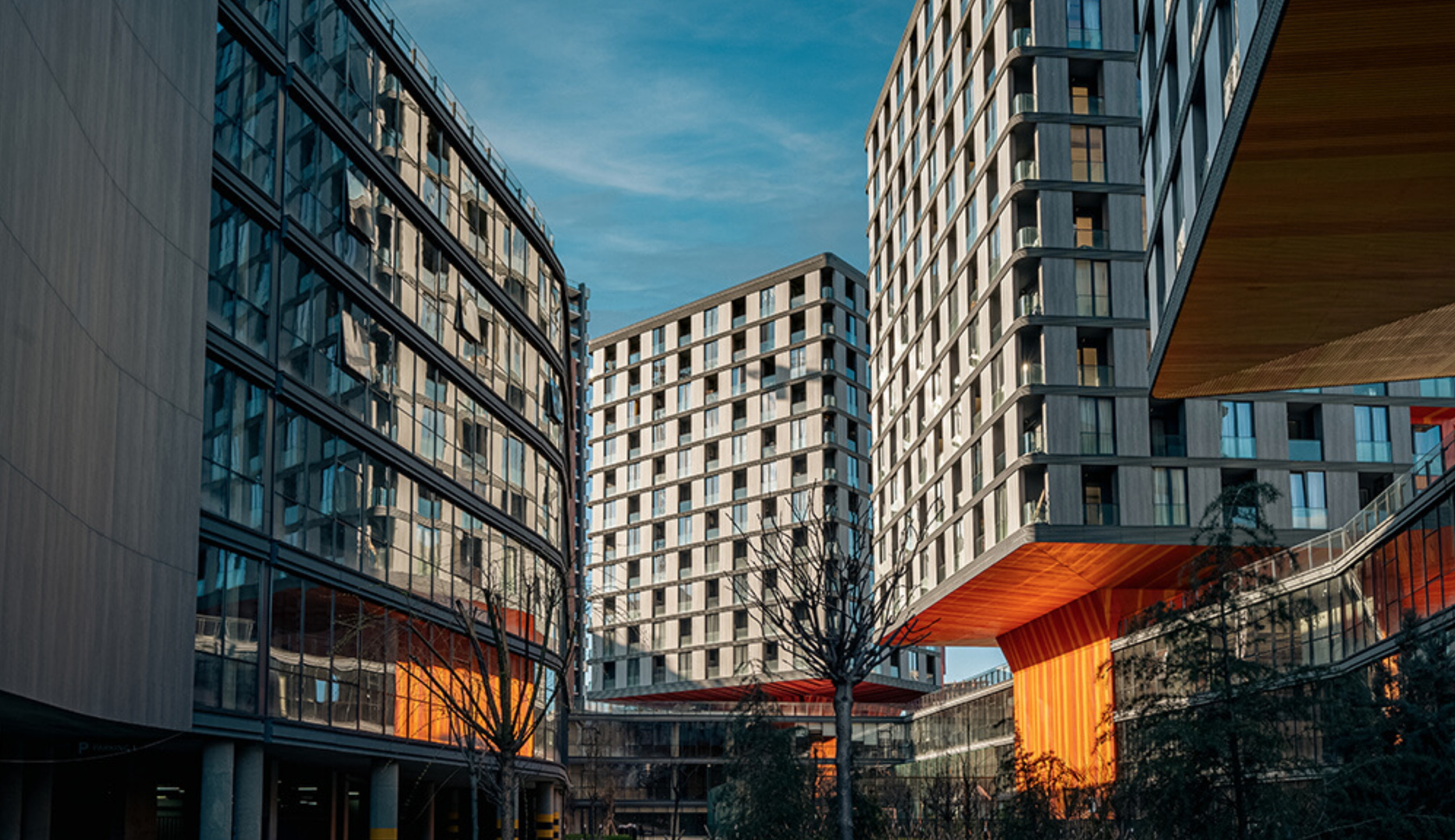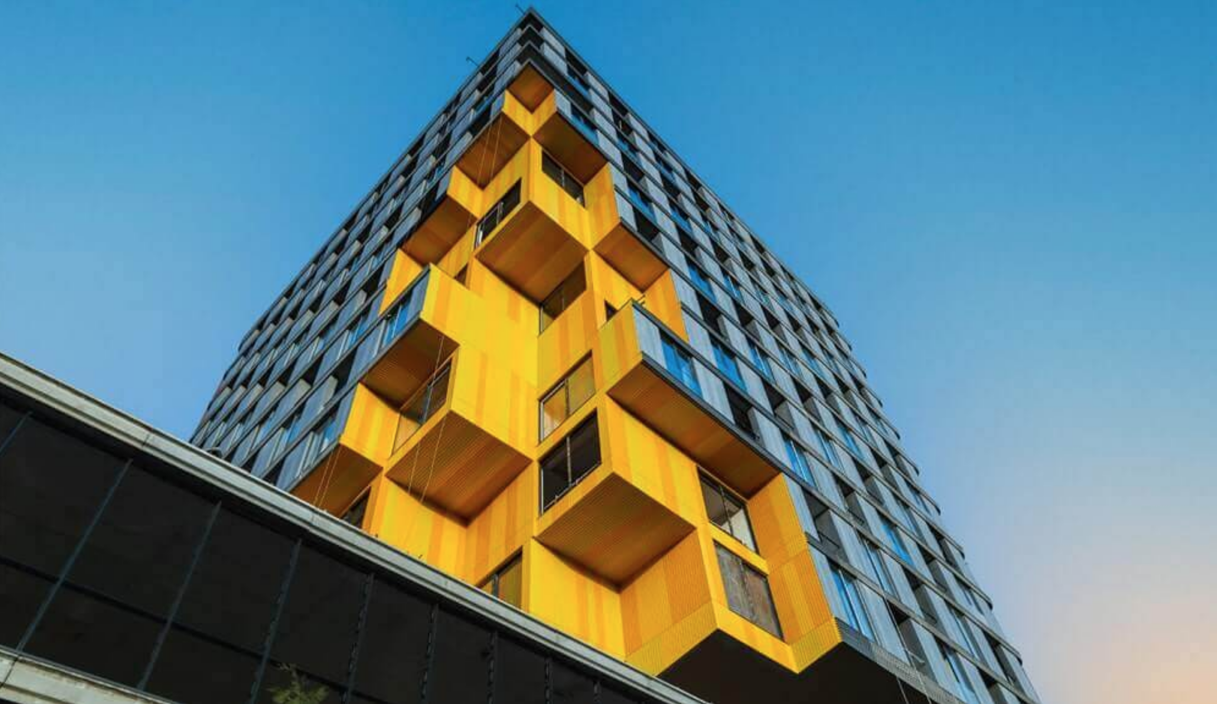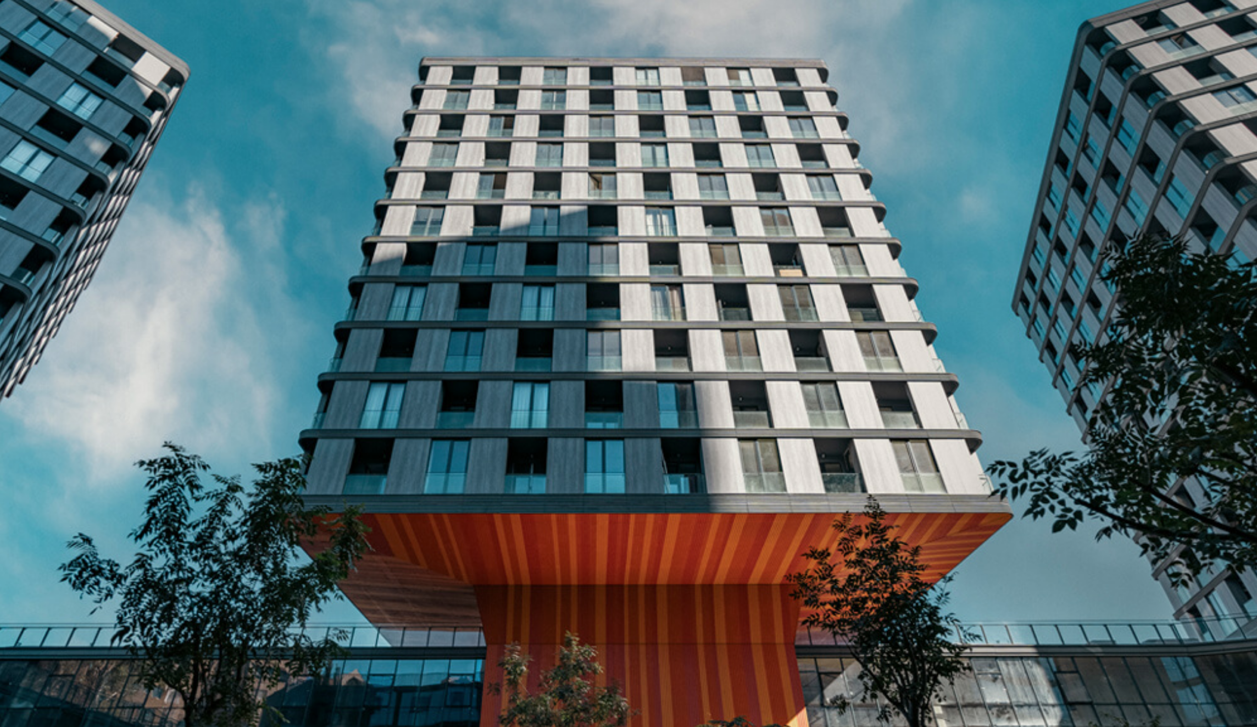 Взяв за основу общий характер архитектуры комплекса, чем-то напоминающего тетрис, и оранжевый цвет, использованный на его фасадах, они разработали удивительно жизнерадостный и стильный интерьер, в котором настолько органично сочетаются футуризм и романтизм, что даже Люк Бессон гарантированно захотел бы снять в нем сиквел «Пятого элемента».
