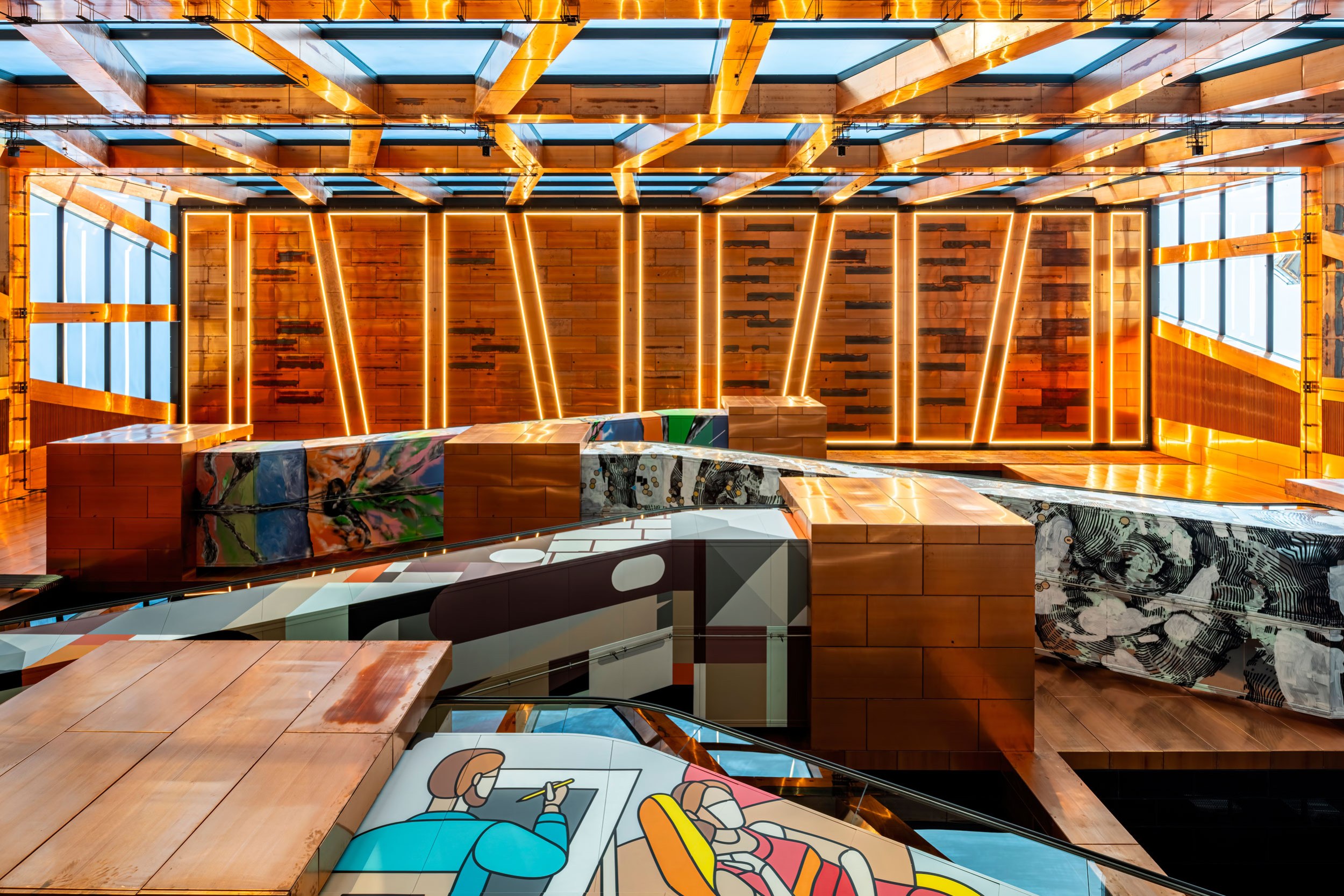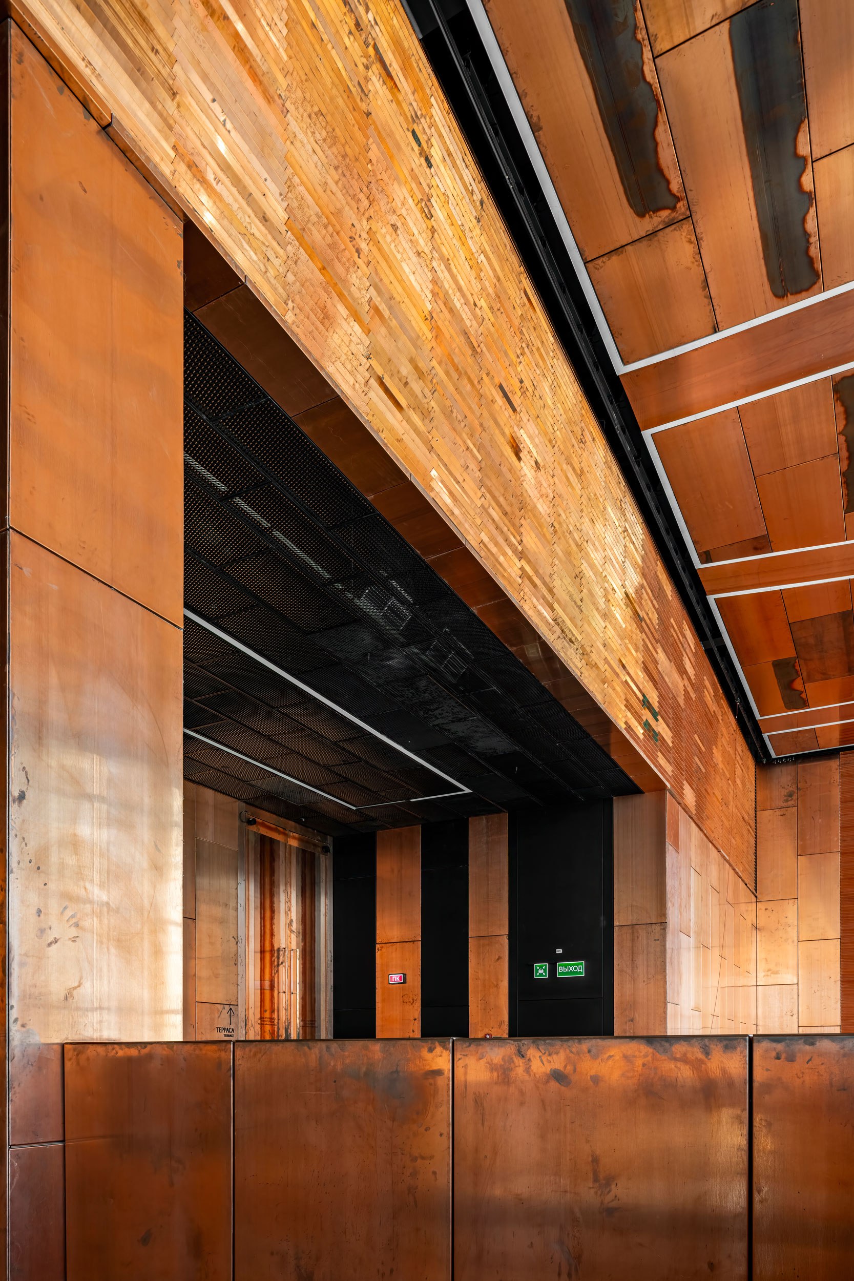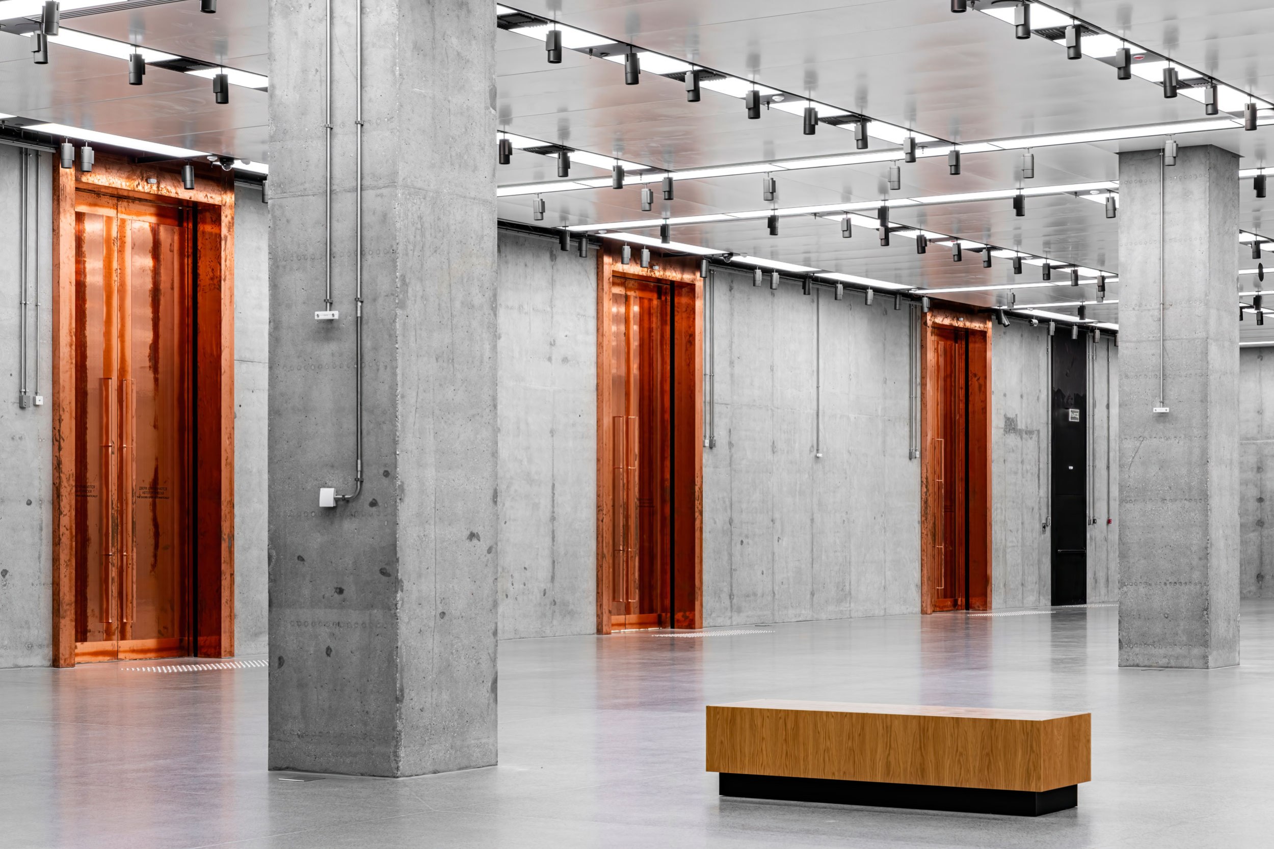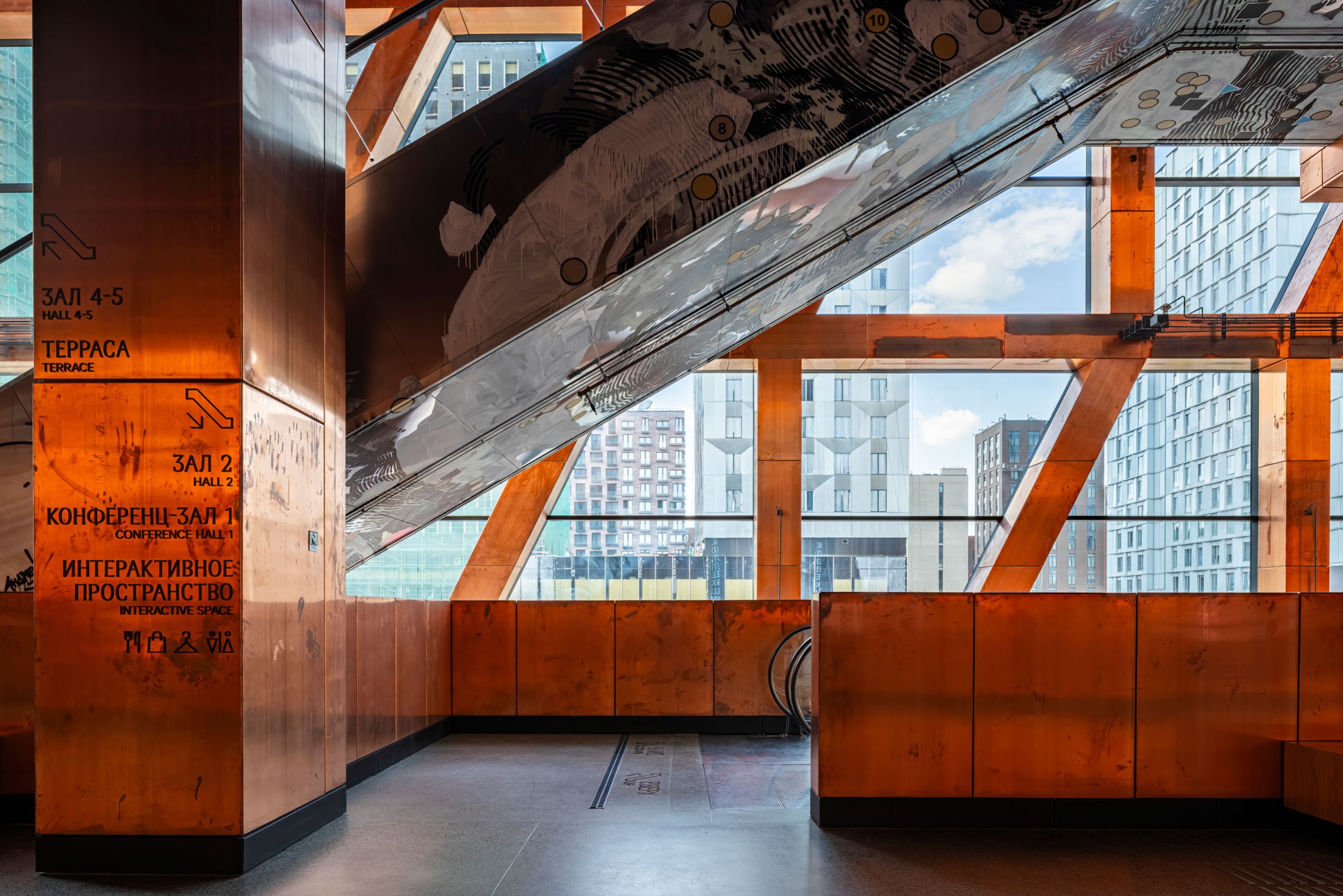 Его отличает продуманность музейной навигации и музейного оборудования – залы на отдельных этажах с возможностью трансформации; а также открытое для всех теплое пространство атриума – «крытой городской площади». И повсеместное использование натуральных материалов: прежде всего, натуральной «не остановленной» меди и открытого бетона.