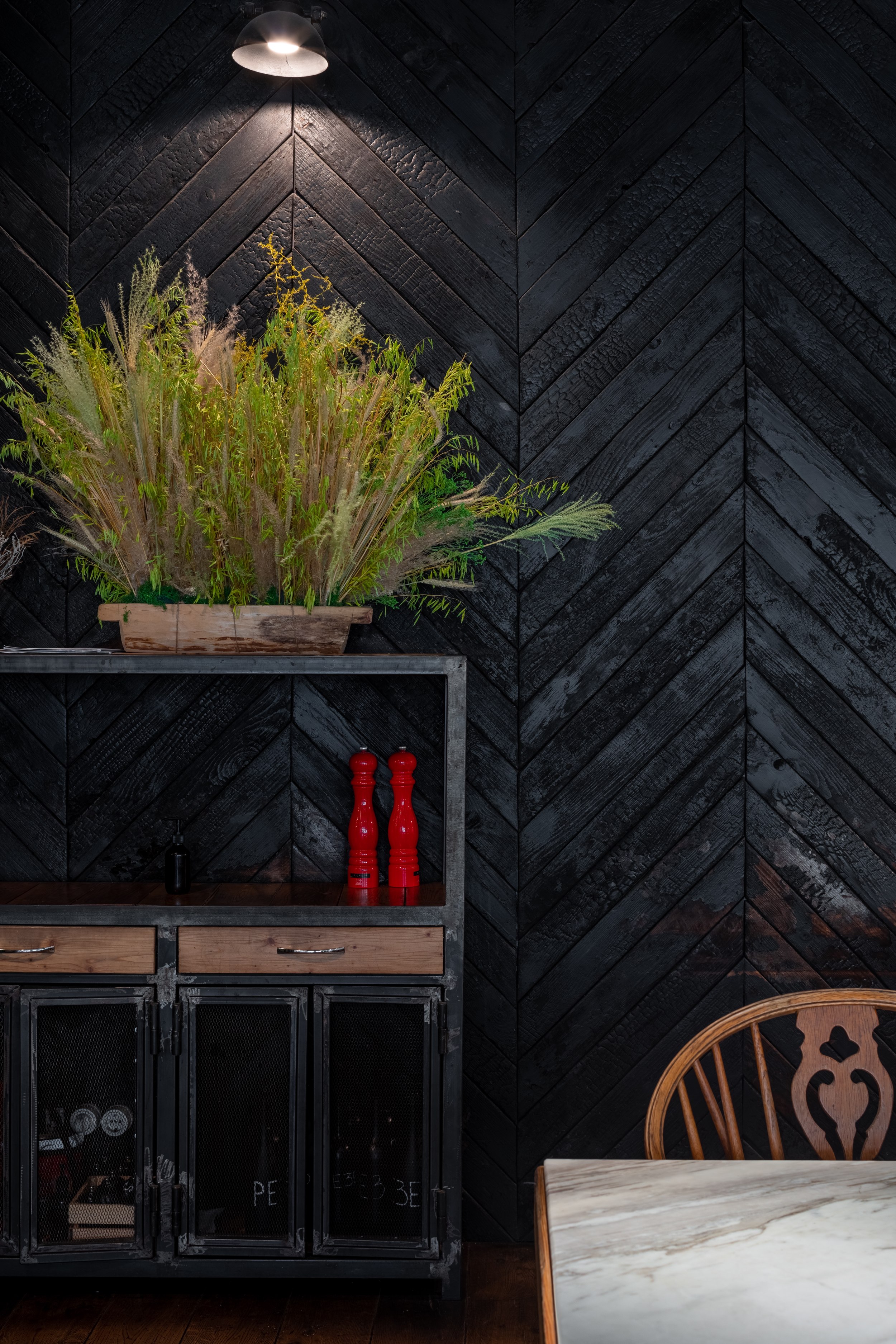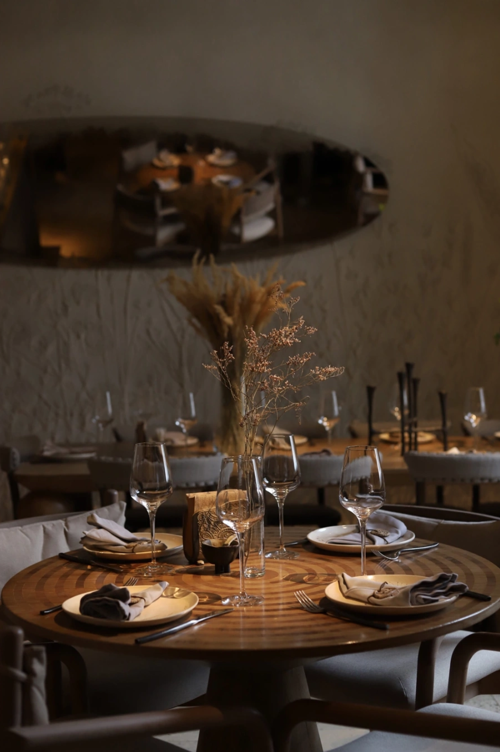 Оштукатуренные глиной стены словно воссоздают быт древнего народа – эту идею поддерживает и неровный каменный пол, сложенный из грубых природных плит. Большая часть блюд готовится на открытом огне в дровяной печи, расположенной в центре зала на первом этаже.