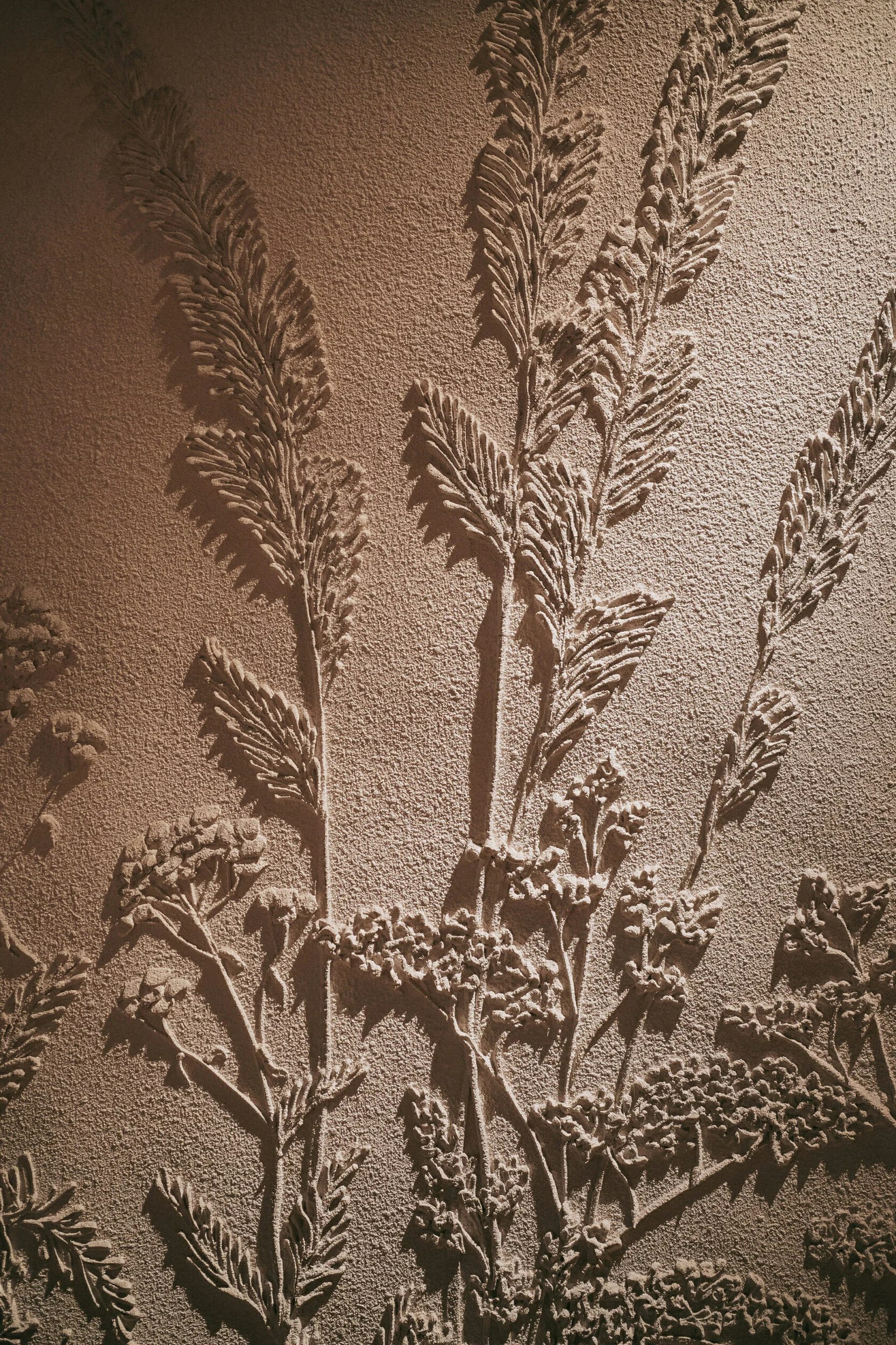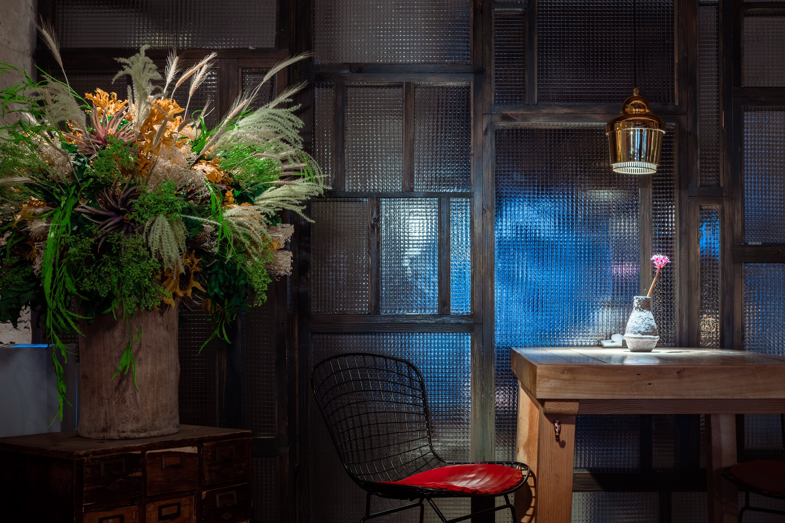 Этот интерьер не придуманная декорация и не «фон» – здесь несколько залов, и каждый из них существует как пространство-переживание. Вот ковер из бабушкиной спальни, удивительно вписанный в фактурную металлическую перегородку, вот сухоцветы – они создают особый узор и рисунок, возникающий словно кадр из кинофильма Вима Вендерса.