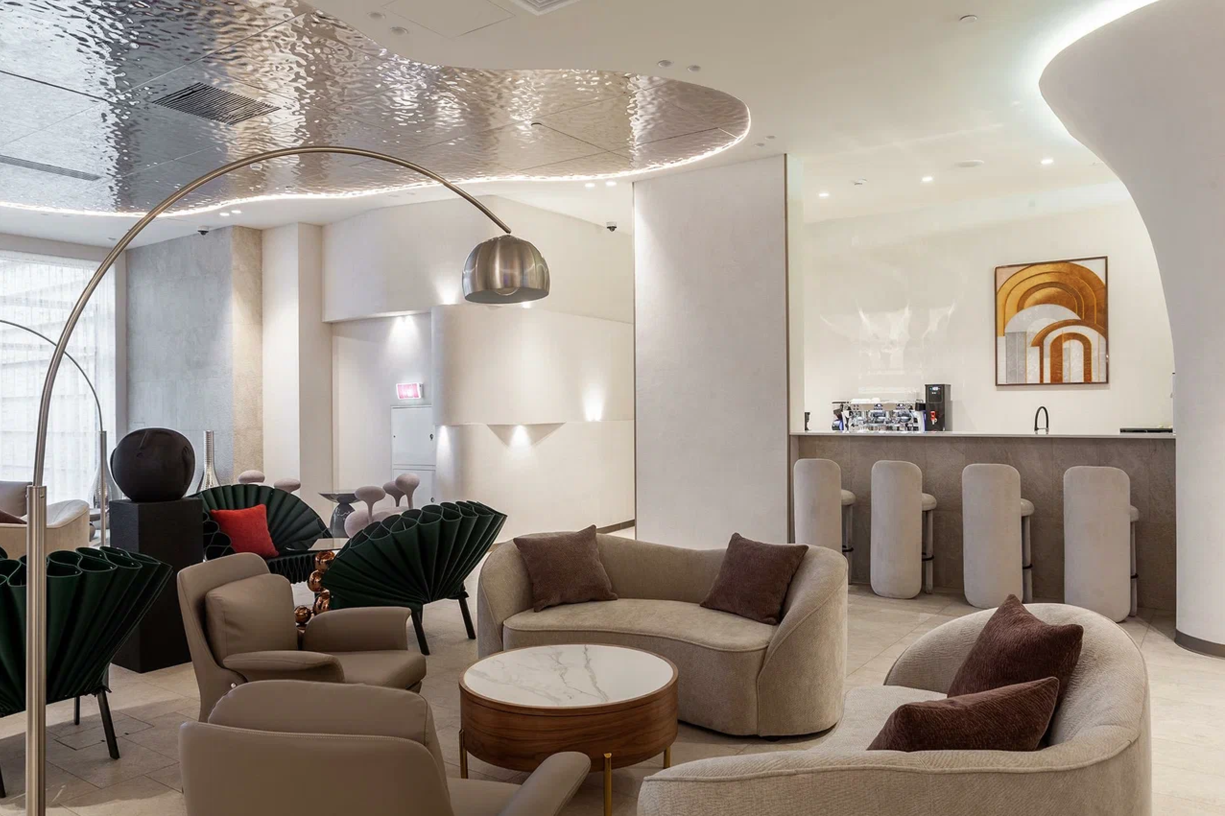 Для решения задачи по превращению 560 квадратных метров площади в оазис эстетики, комфорта и здоровья была приглашена команда бюро MAD Architects, имеющая многолетний опыт создания высококлассных общественных интерьеров.