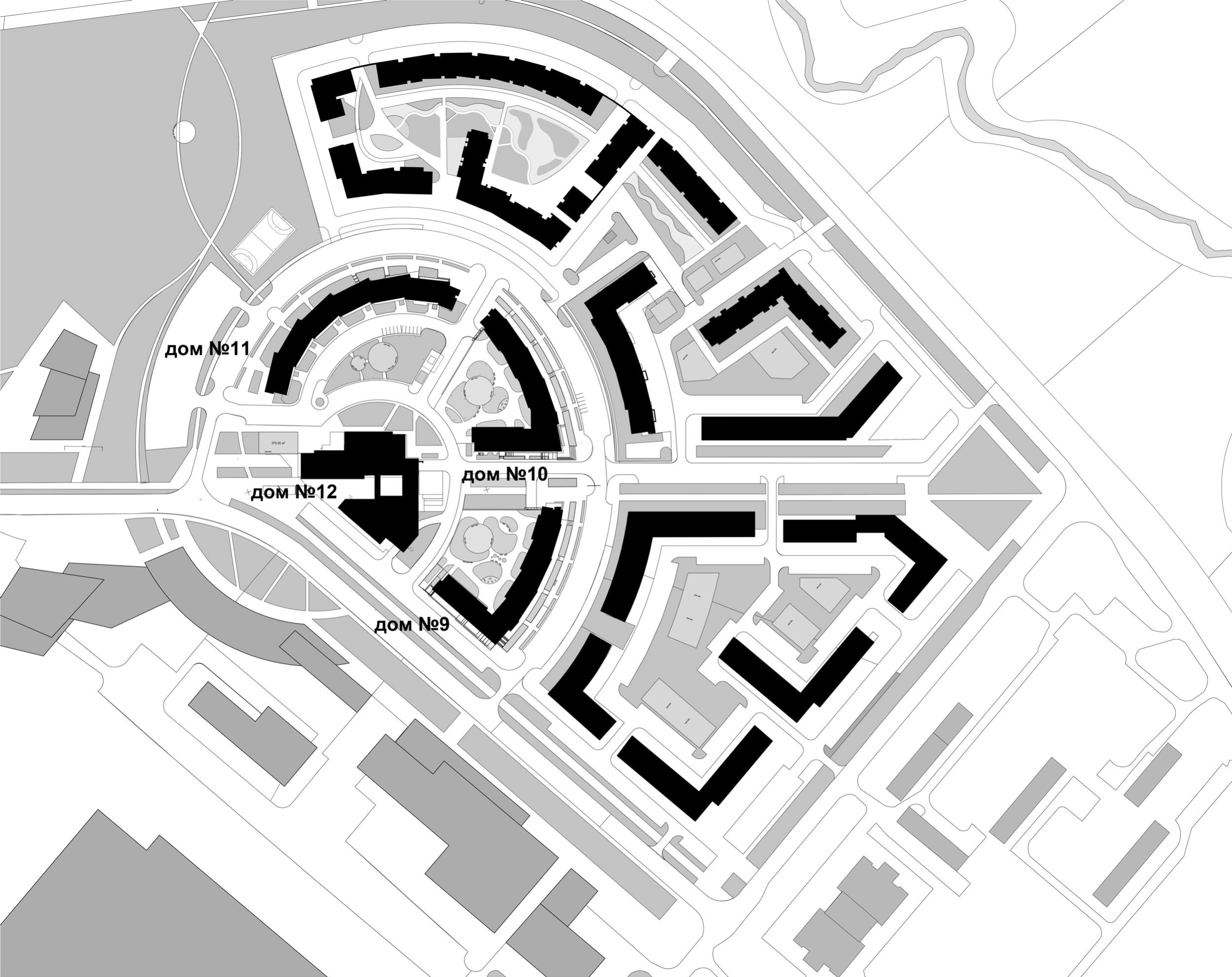 Застройка центральной части жилого комплекса выполнена в соответствии с общей концепцией развития территории микрорайона «Древлянка-9» жилого района «Древлянка-II» в Петрозаводске.