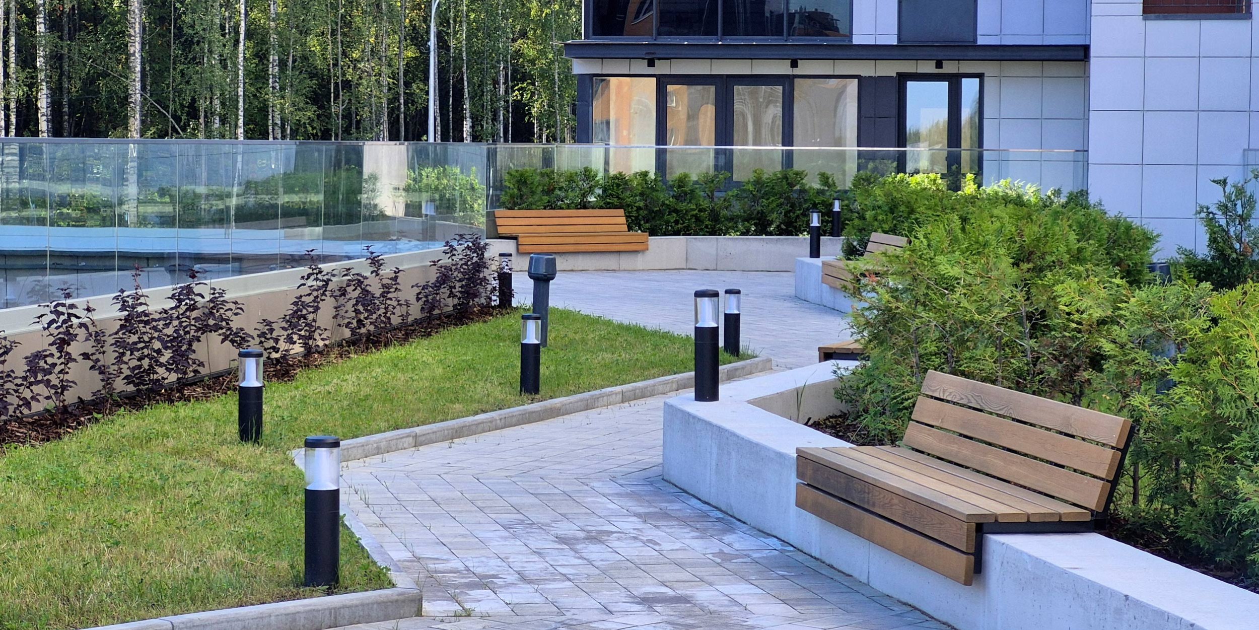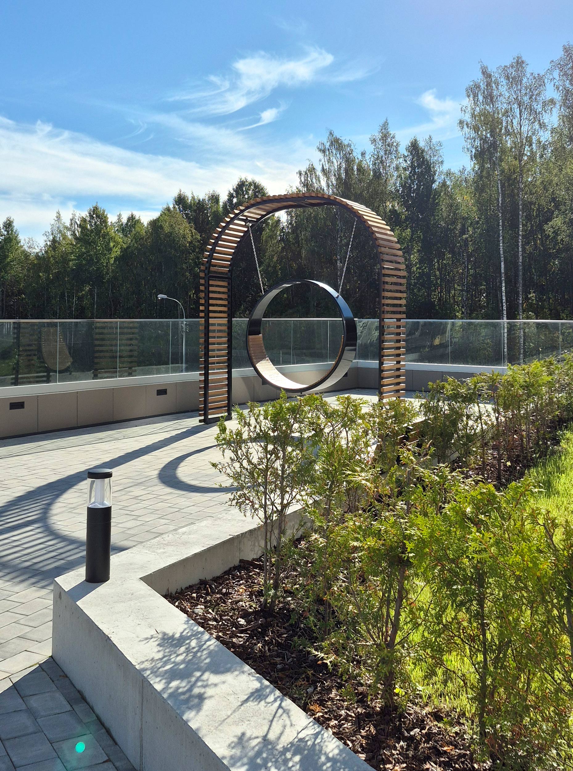 Для благоустройства территории премиального ЖК Holms в Пензе архитектурное бюро «Вещь!» выбрало путь сдержанности, не лишенной выдумки: в цветниках спрятаны атмосферные светильники, прогулочную зону украшают кинетические скульптуры, а зонировать пространства помогают перголы. Все малые архитектурные формы разработаны с нуля.