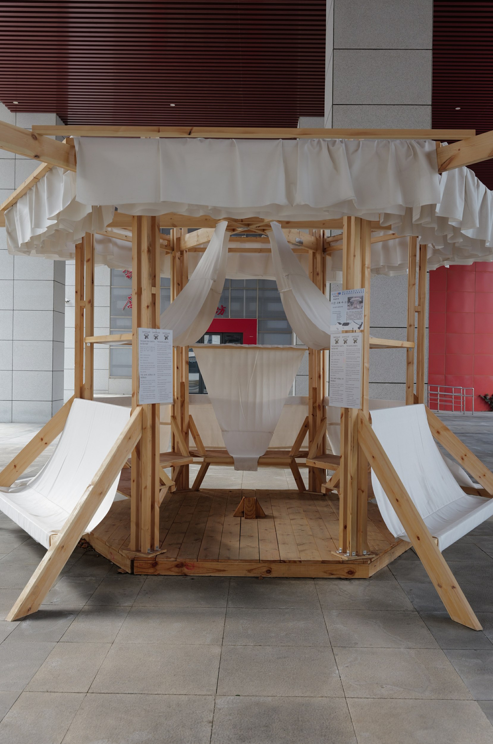 Участникам конкурса нужно было придумать пространство для отдыха и неформального общения студентов после учебы. Площадкой для реализации проектов стал студенческий городок Anhui Jianzhu University. По итогам конкурса были сформированы интернациональные команды, которым предоставили все необходимые материалы и столярный цех университета со станками и инструментами для возведения павильонов.