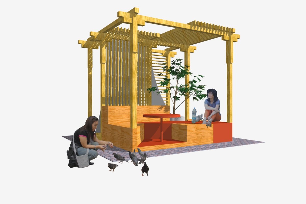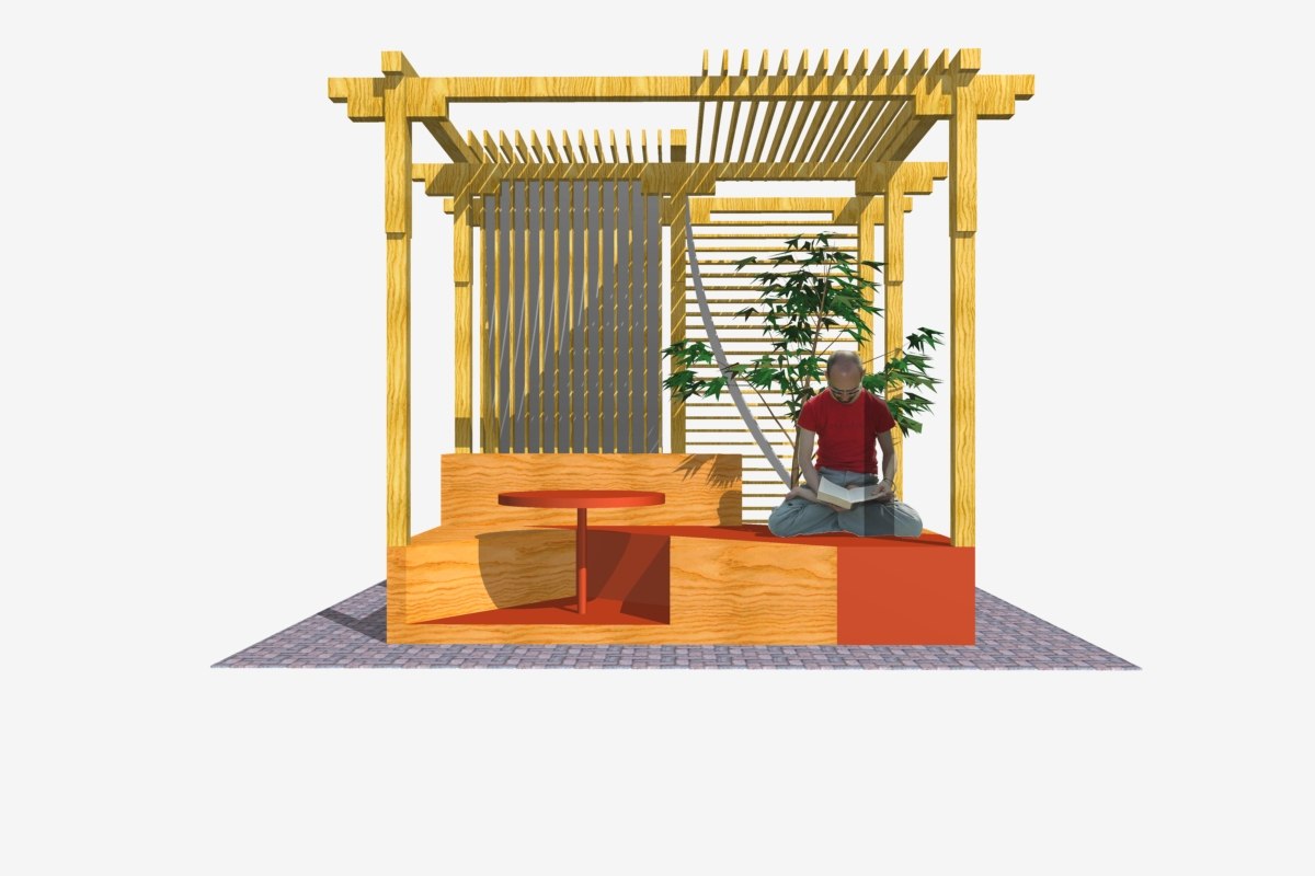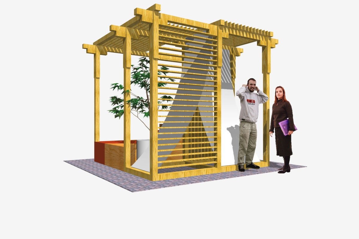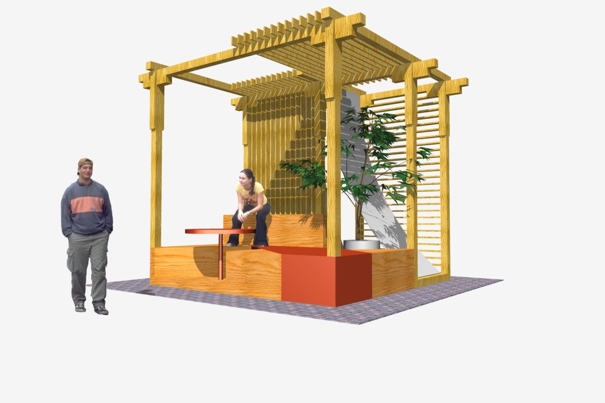 Беседка создает защищенное, но открытое пространство для 6 человек. Внутри нее студенты могут: