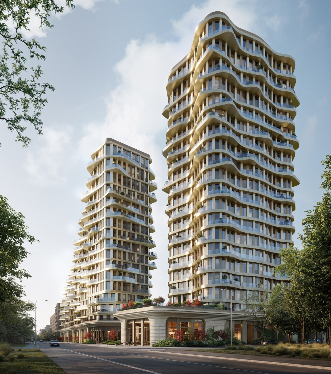 Еще совсем недавно, в 2025 году, компания «Самолет» демонстрировала впечатляющую подборку визуализаций с проектом бюро Сергея Скуратова, в котором было все, за что ценят этого архитектора: понимание масштаба, динамичная и продуманная композиция, интересная пластика и решения фасадов, финальный акцент на вершине высотной доминанты.
