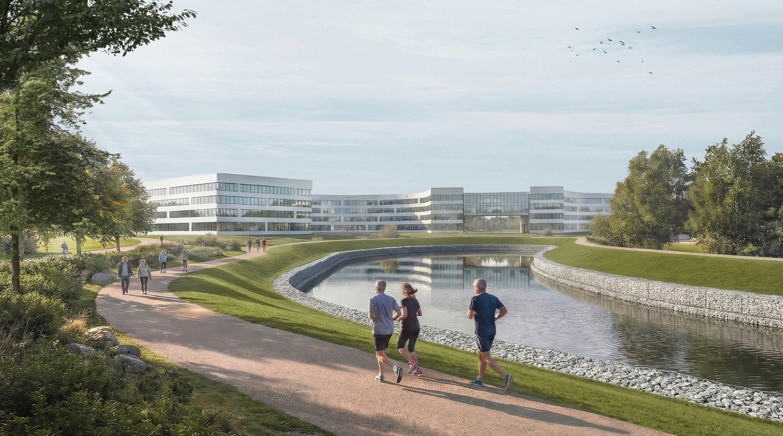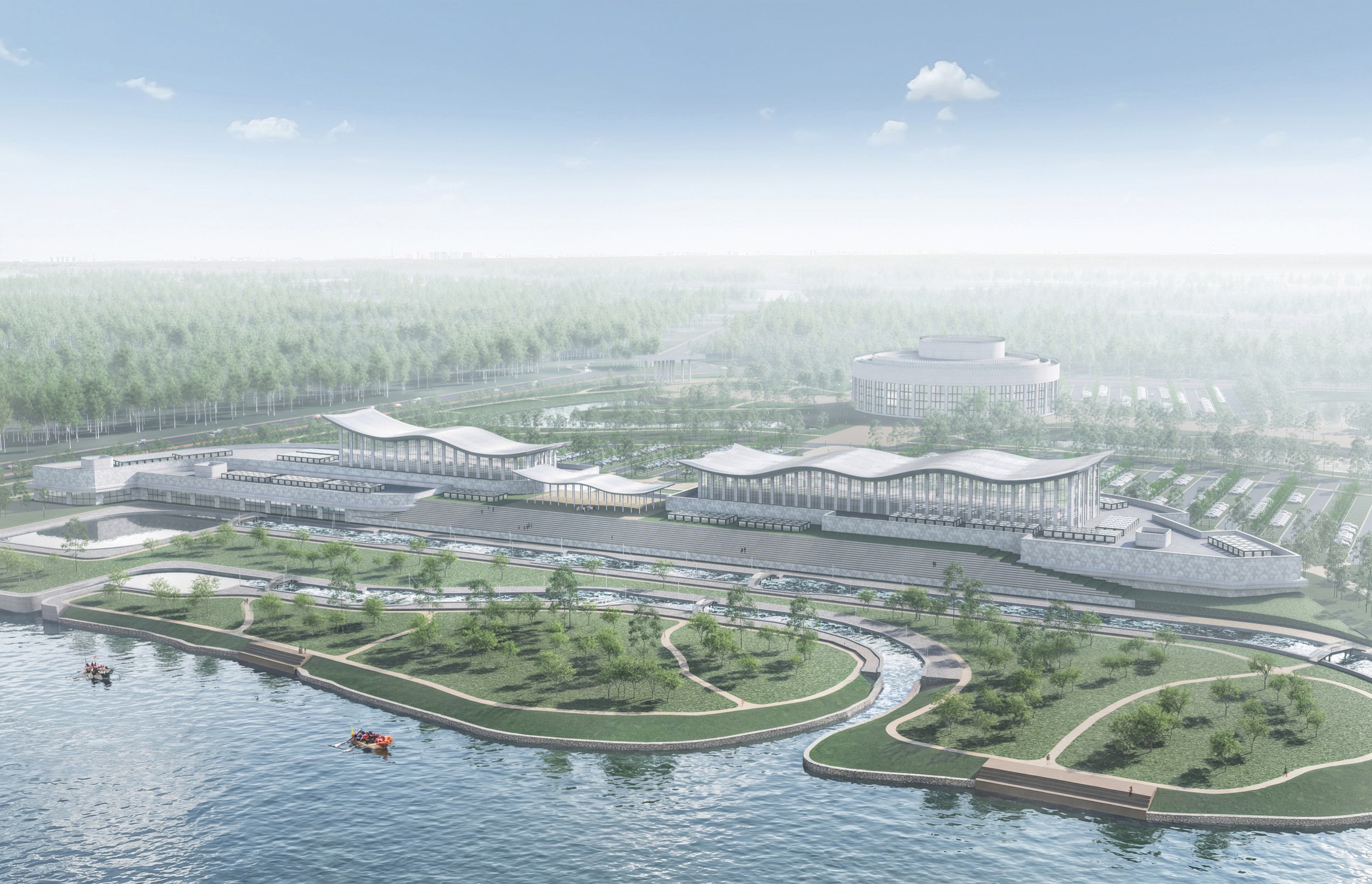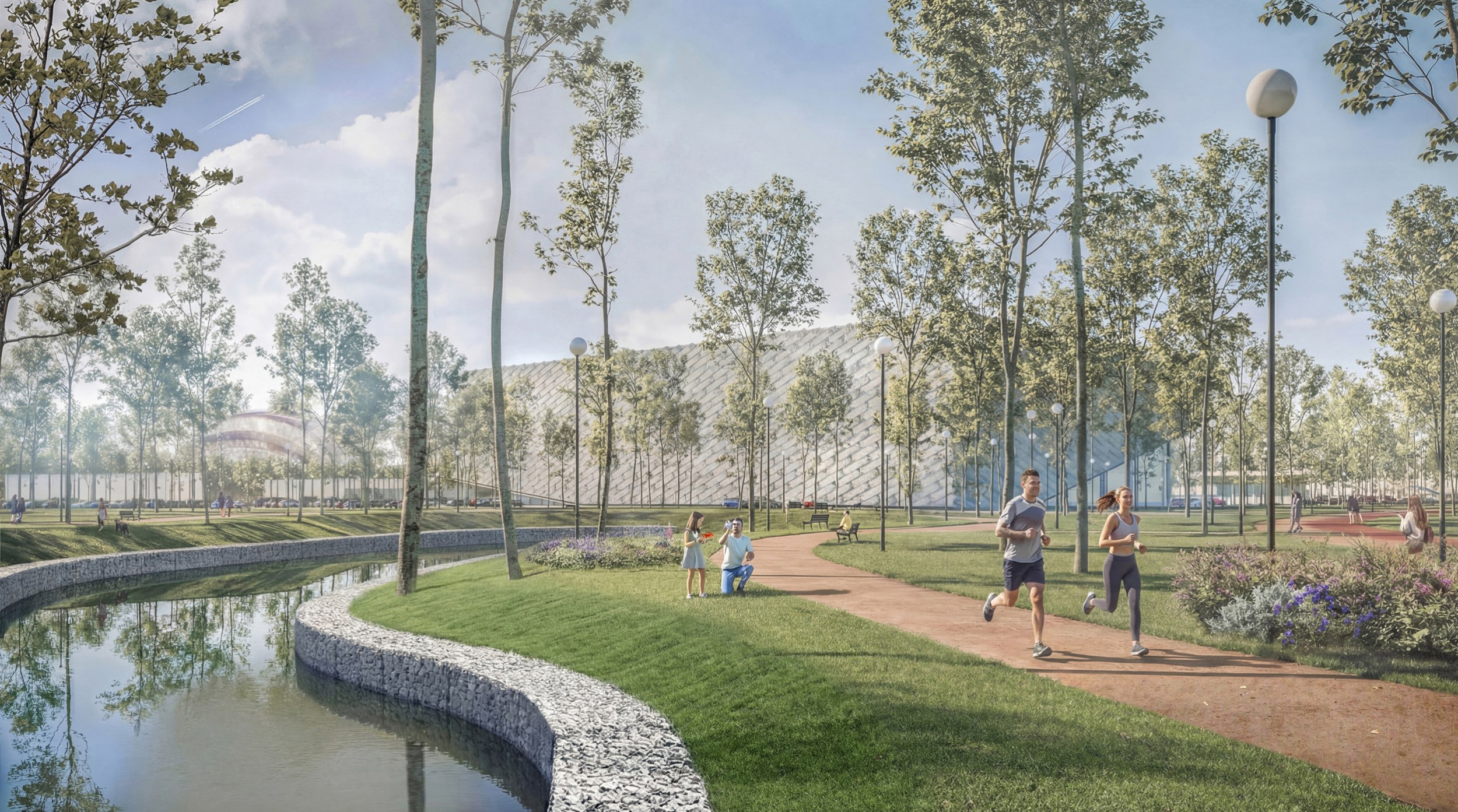 Гидрологическая система представляет собой каскад искусственных прудов с контролируемым водообменом. Она улучшает микроклимат, формирует устойчивую экосистему и обеспечивает функционирование центра водных видов спорта.