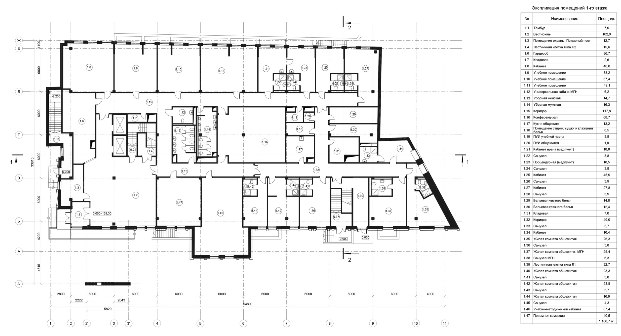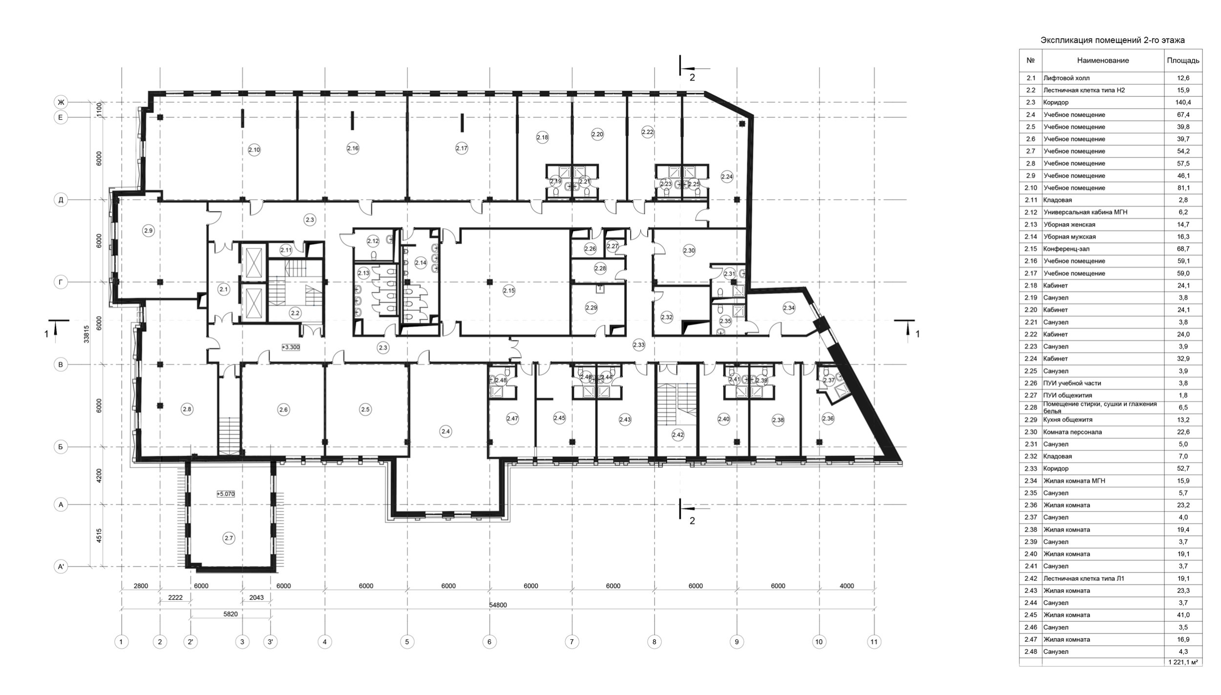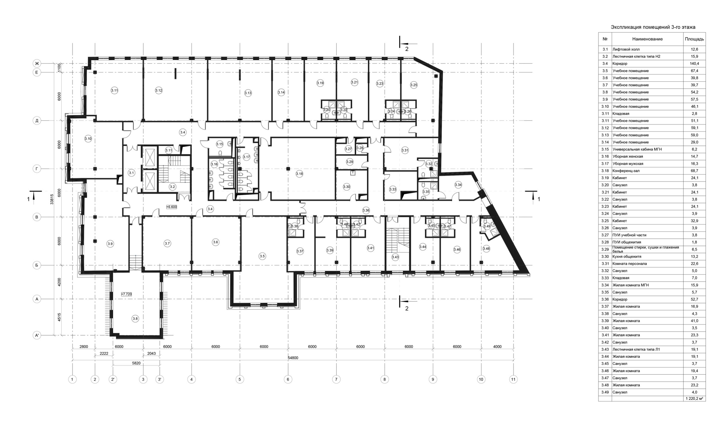Реконструкция здания предусматривала приспособление под образовательную функцию и общежитие. В функциональном балансе учебные площади занимают 77%, общежитие – 23%.