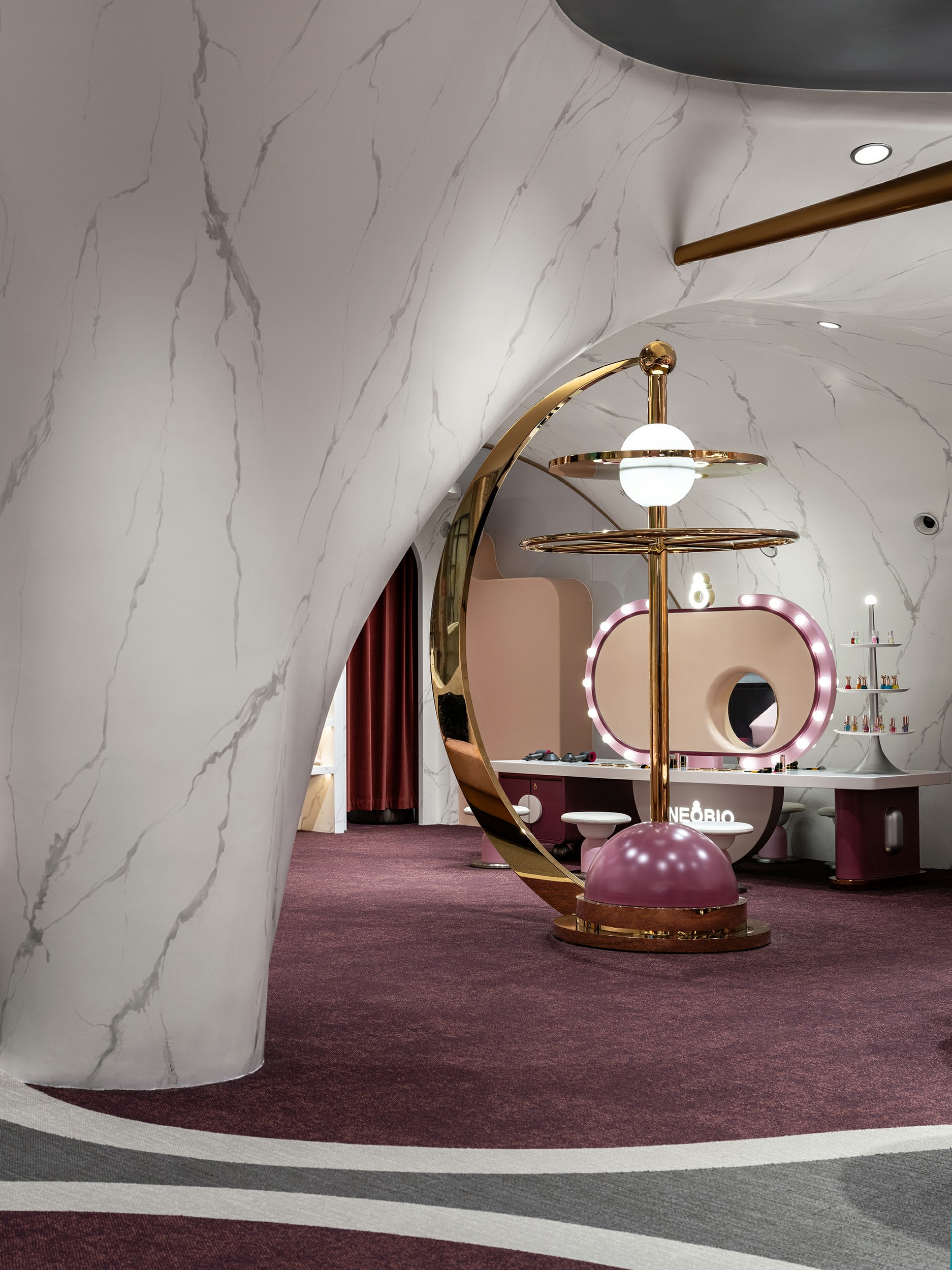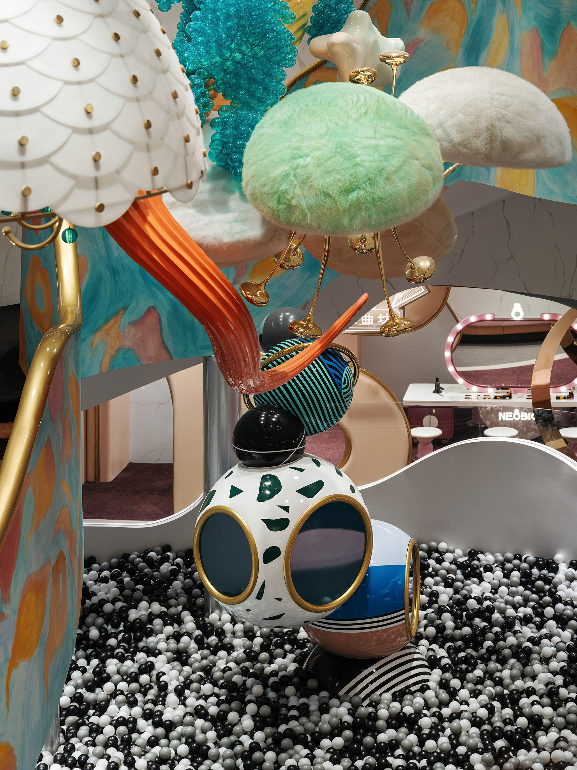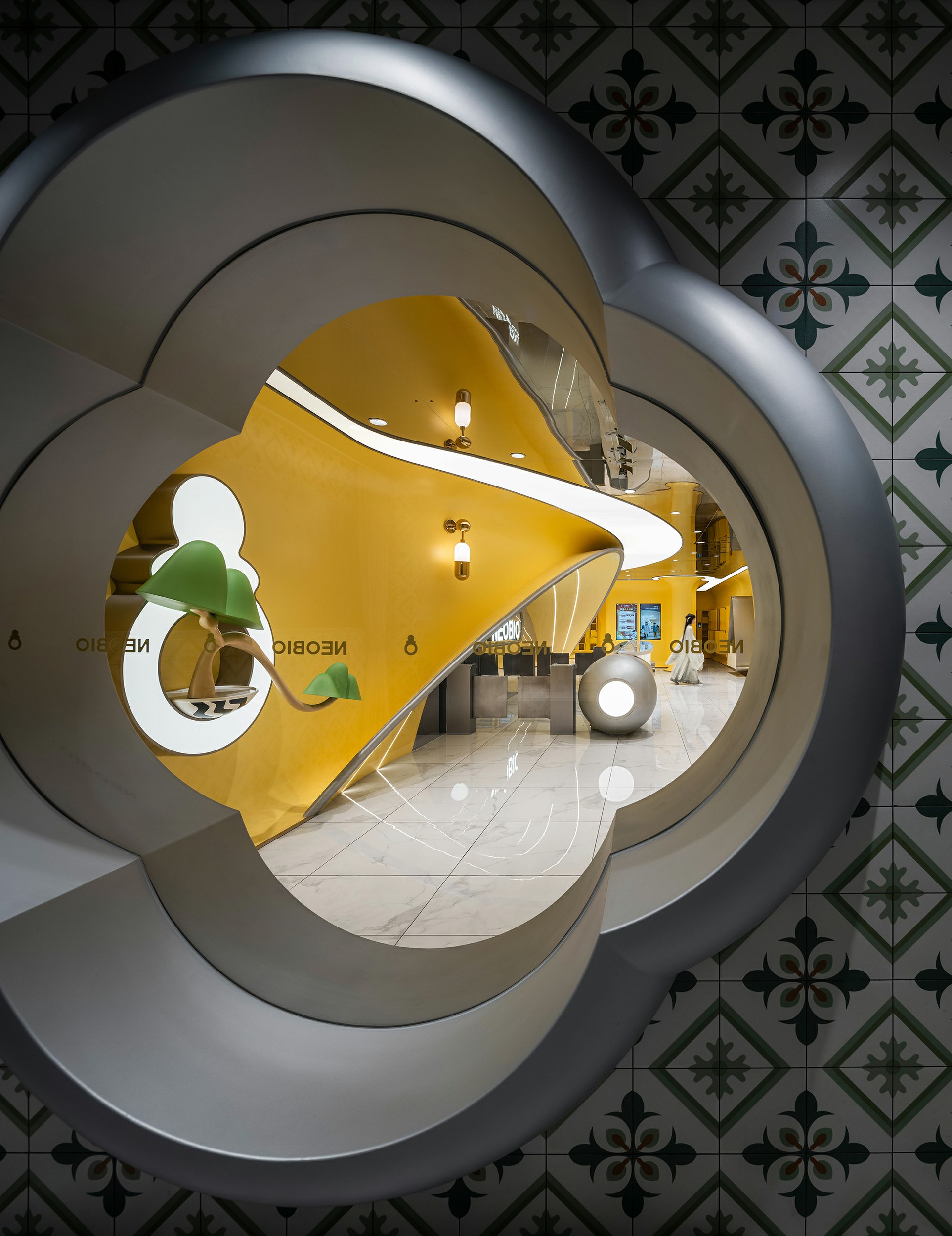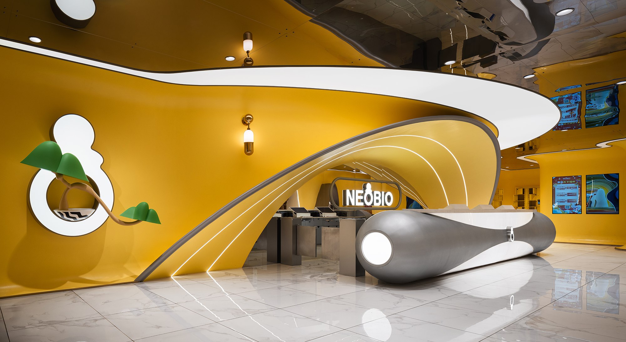 Для центра NEOBIO площадью почти 5000 кв. м переделана часть двух этажей огромного торгового центра Yu Garden, расположенного в старом районе Юйюань. Исторический контекст, архитектурное и культурное наследие стало источником вдохновения для команды PIG DESIGN. В качестве источника вдохновения архитекторы использовали образ волшебного сада – нечто среднее между миром Зазеркалья, в котором оказалась Алиса, и волшебными садами китайских сказок, в которых любая фантазия и любой образ получает шанс на существование и трансформацию во что-то интересное.