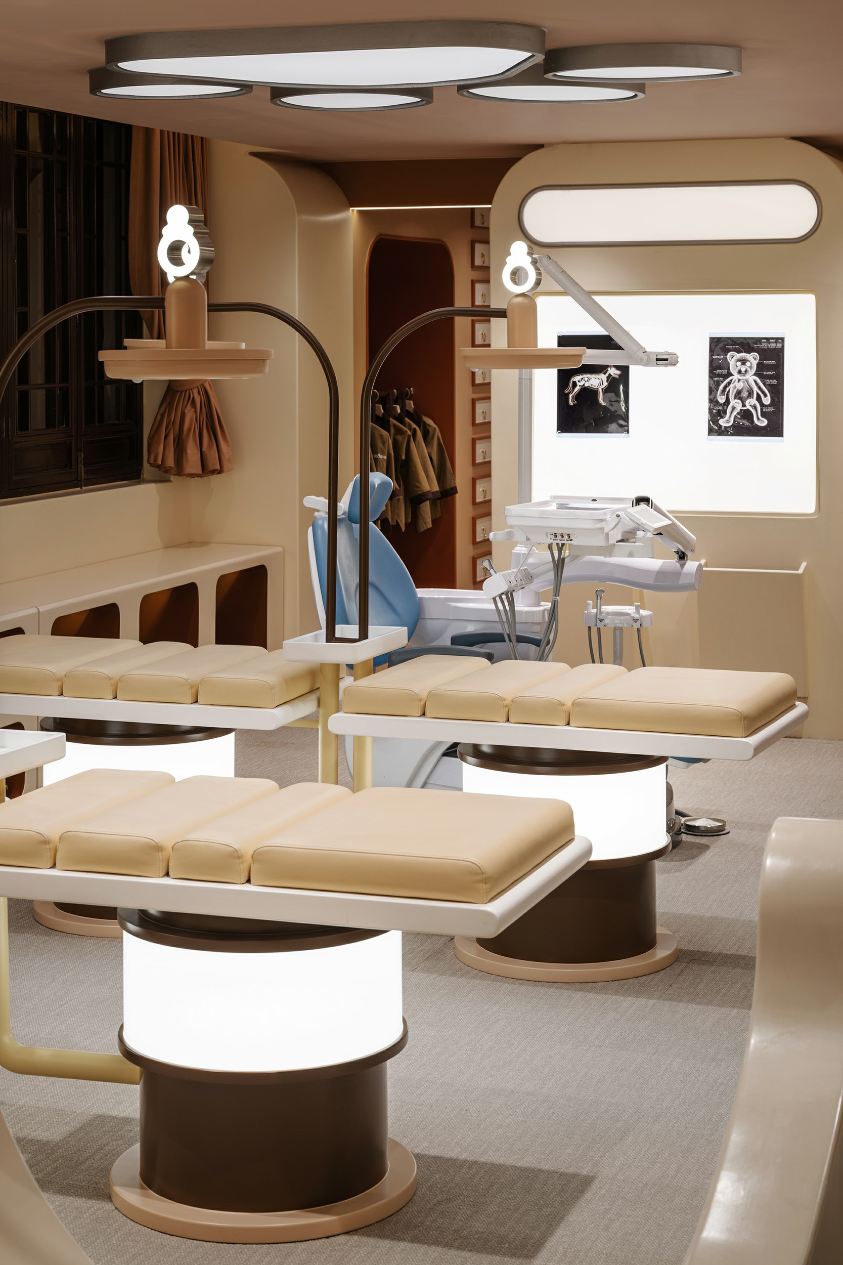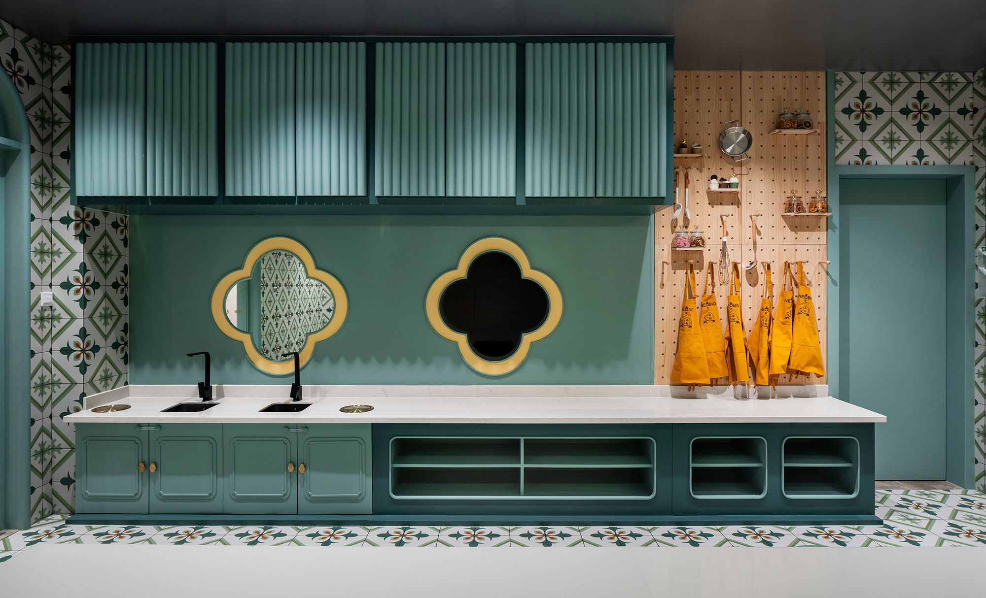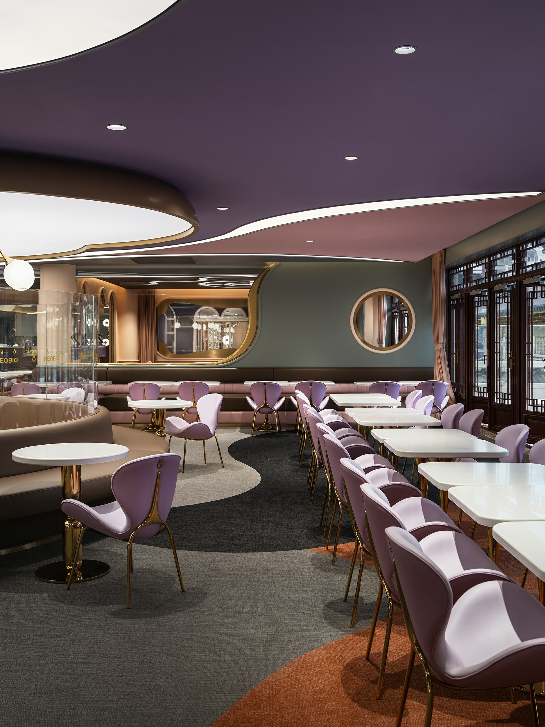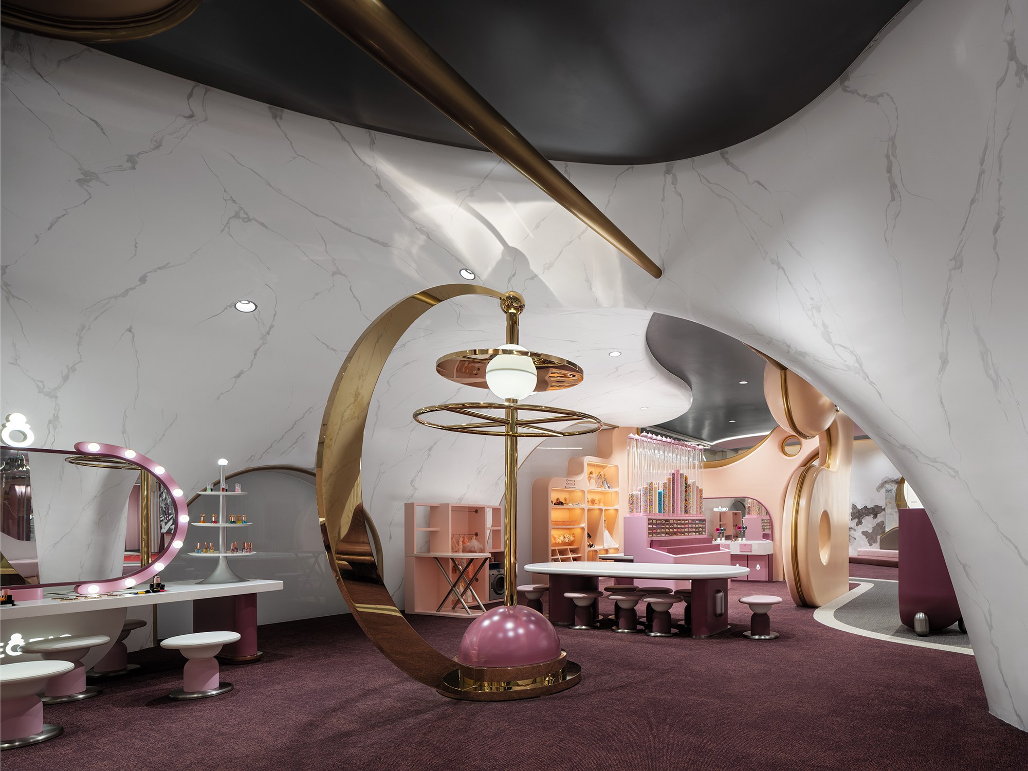 Нужно отдать должное дизайнерам и архитекторам PIG DESIGN. Они с энтузиазмом переосмысливали все возможные элементы интерьера, создавая для них новые формы, используя неожиданные материалы и цвета и собирая их в какие-то невероятные «букеты» из светильников, колонн, перегородок, лестниц и предметов мебели. Причем часть объектов буквально перетекает одни в другие, и в некоторых местах трудно разобраться, что перед тобой – исключительно декоративный или вполне функциональный элемент. Благодаря этому посещение центра превращается в своеобразный квест, во время которого посетители должны разобраться в том, что есть что и как этим пользоваться.