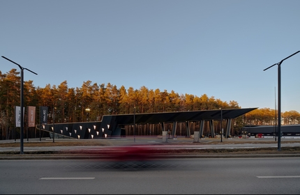 Бюро CNTR спроектировало для нового спортивного кластера на окраине Екатеринбурга автозаправочную станцию, сумев превратить небольшой объект в локальную доминанту: что-то вроде въездного знака, который рассказывает об окружающей территории и задает тон. А кроме того – демонстрирует разнообразные архитектурные приемы. Даже неподготолвенный зритель, приехав заправить машину, почувствует движение и статику, игру с массой, сочетание пятна и линии.
