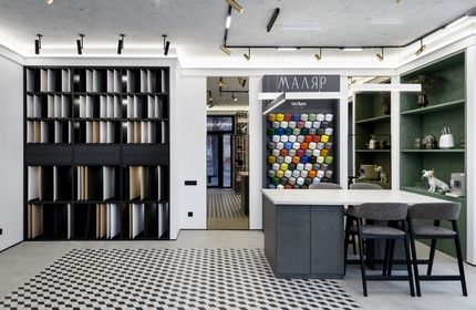 Бюро New Design разработало интерьер небольшого салона красок в Барнауле с такой изобретательностью и щедростью на идеи, как будто это огромный шоу-рум. Один зал и кабинет превратились в выставку колористических и дизайнерских находок, в которой приятно делать покупки и общаться с коллегами.