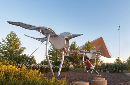 На берегу озера Кабан в Казани бюро АФА реализовало проект детского пространства, где игра строится вокруг исследования. Развивая концепцию благоустройства Turenscape, архитекторы превратили территорию у театра Камала в последовательность природных ландшафтов – от «Зарослей» с песком до «Отмели» с ветряками и «Высоких берегов» со скалодромом. Ключевой элемент – вода, которую можно направлять, слушать и чувствовать.