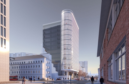 Показываем проект офисного здания на пересечении улицы Радио с Бауманской мастерской Михаила Дмитриева: собранное из чистых объёмов – эллипсоида, куба и перевернутой «лестницы» – оно «встаёт на цыпочки», отдавая дань памятникам конструктивизма и формируя пространство площади.