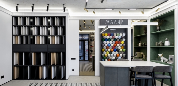 Бюро New Design разработало интерьер небольшого салона красок в Барнауле с такой изобретательностью и щедростью на идеи, как будто это огромный шоу-рум. Один зал и кабинет превратились в выставку колористических и дизайнерских находок, в которой приятно делать покупки и общаться с коллегами.