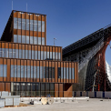 «Амундсен» – это квартал 14-24 этажа с развитой инфраструктурой в первых этажах и интересной ландшафтной концепцией, куда вплетены разнообразные зоны отдыха. Для того, чтобы усилить пластику фасадных решений, архитекторы комбинировали несколько типов материалов: темная штукатурка была включена в композицию из кирпича и композитных панелей. Секции получили разнообразную геометрическую трактовку за счет соединения темно и светло-серых плоскостей, акцентированных золотистыми «рамами».