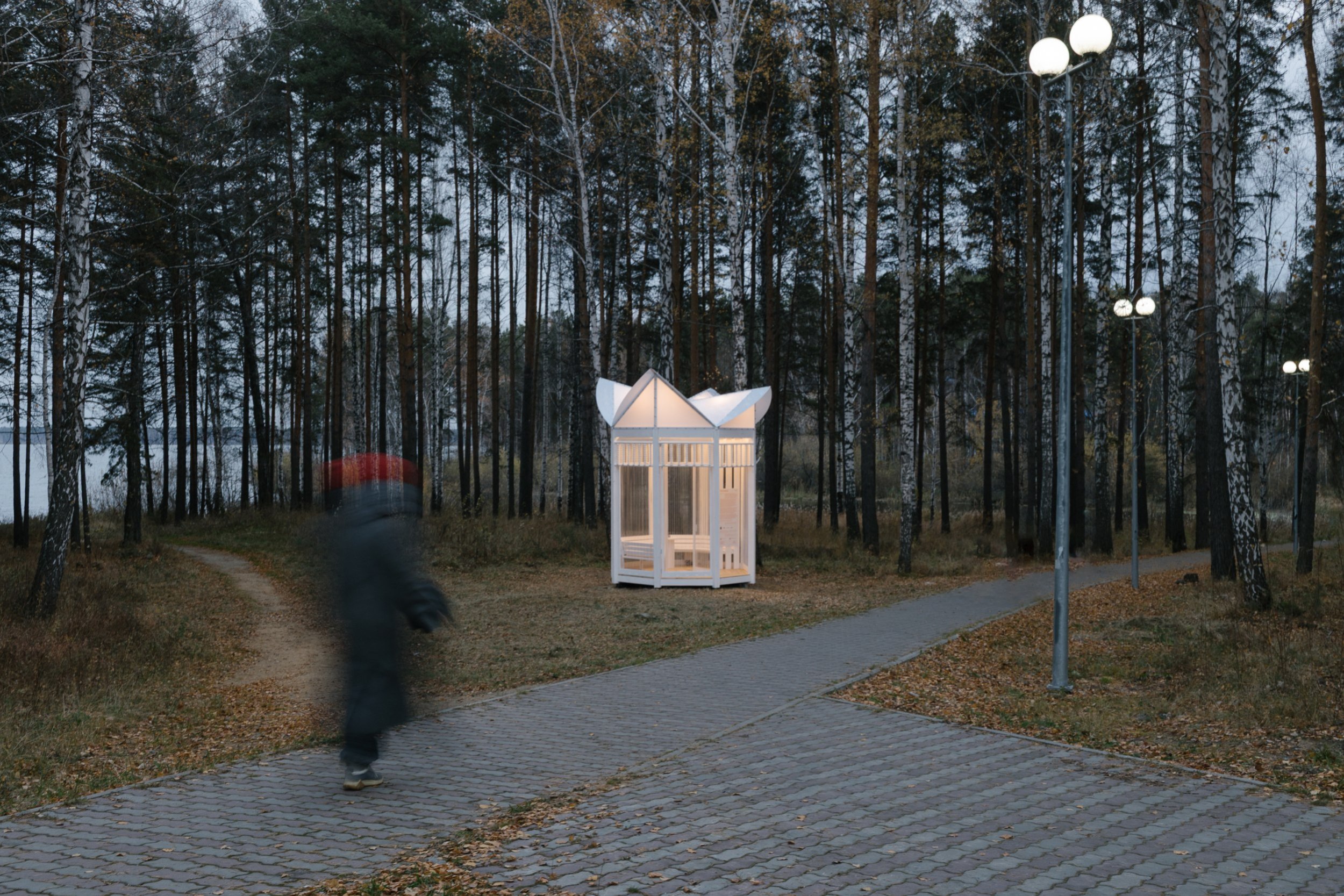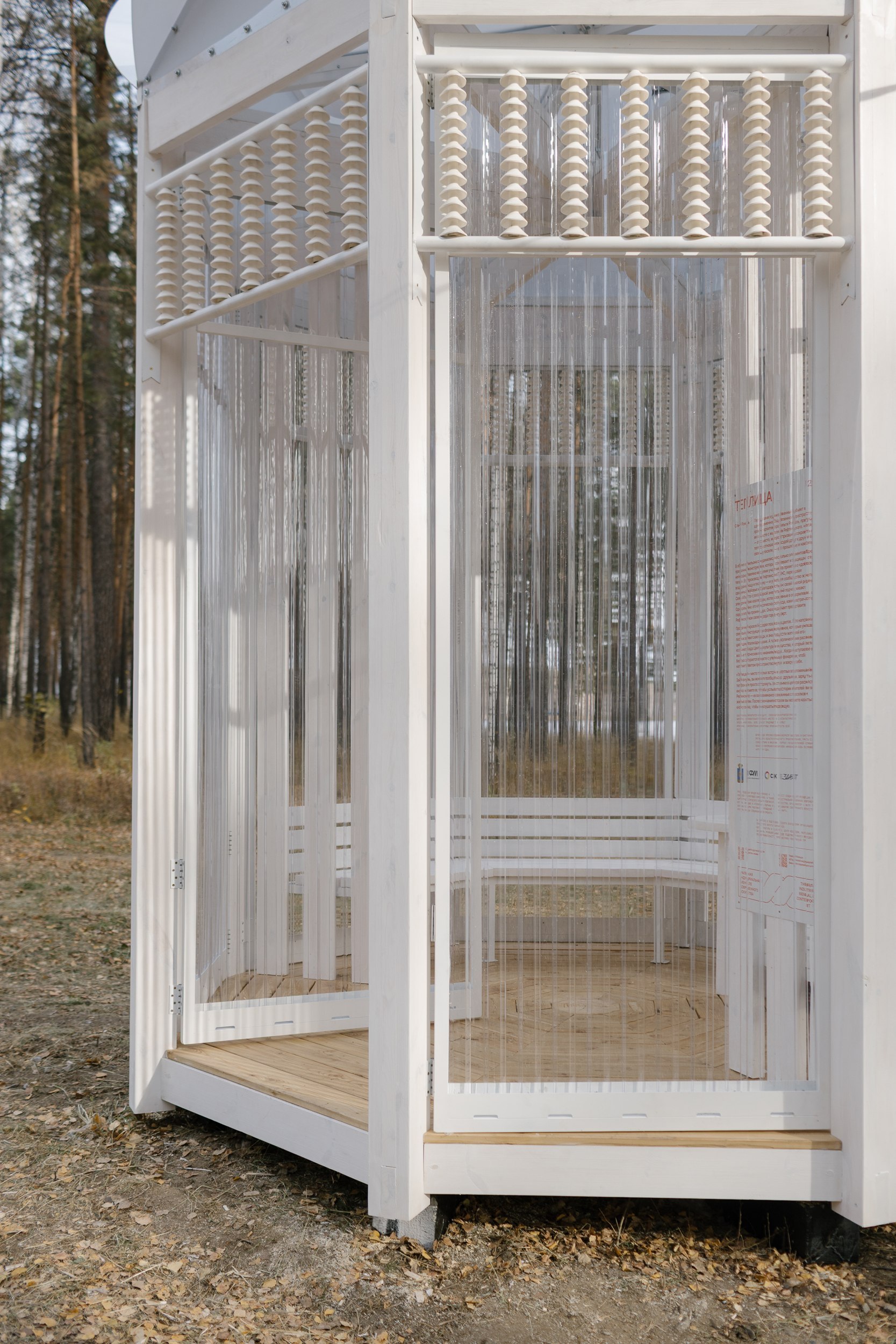 Павильон, который авторы – команда архитекторов бюро UTRO во главе с Ольгой Рокаль – создали в рамках Уральской индустриальной биеннале 2025, был построен в поселке Рефтинский, в парке рядом с берегом Рефтинского водохранилища – любимом месте прогулок и отдыха местных жителей. Авторы назвали свой арт-объект павильон «Теплица», так как архитектурно он напоминает нечто среднее между дачной теплицей, в том числе благодаря использованию для стен прозрачного профилированного поликарбоната, и классической садовой беседкой. Но помимо чисто типологических ассоциаций здесь есть и символические причины для оригинального названия постройки: он создан как символ тепла межчеловеческого общения и связи между людьми, временем и пространством, в котором они живут.