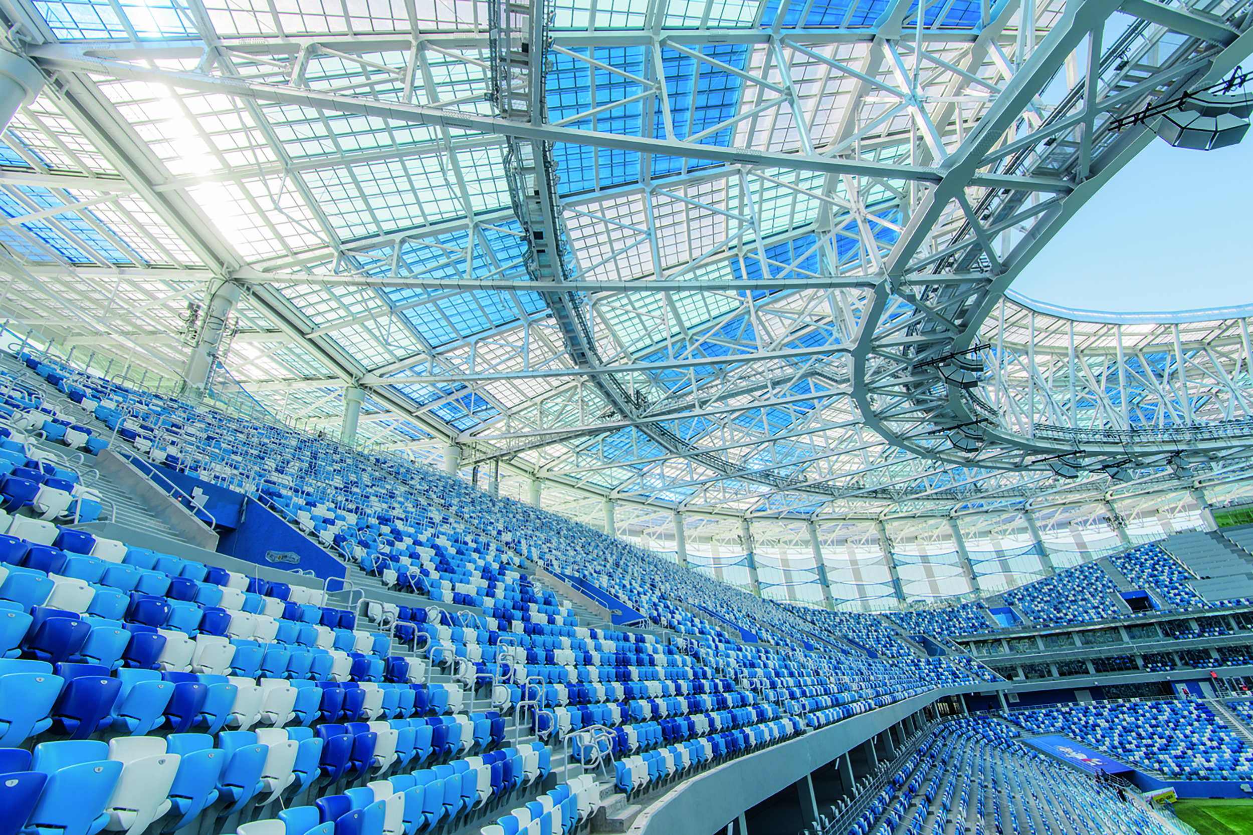 К Чемпионату мира по футболу 2018 года в России было построено несколько стадионов, архитектура которых, а также конструктивные и технические решения отвечали самым высоким требованиям FIFA. Более того, во многих проектах, которые планировалось сохранить и использовать в дальнейшем, закладывались решения, повышающие уровень комфорта для зрителей и учитывающие климатические особенности регионов, в которых они возводились. Для этого в конструкции стадионов закладывались долговечные и эффективные ограждающие конструкции, в первую очередь – кровли или навесы над зрительскими местами или над всем стадионом, позволяющие проводить соревнования не только в летний, но и в зимний сезон, и в межсезонье. Ключевым материалом для создания кровель был и остается поликарбонат, легкость и надежность которого позволяют создавать большие поверхности, не перегружая несущие конструкции.