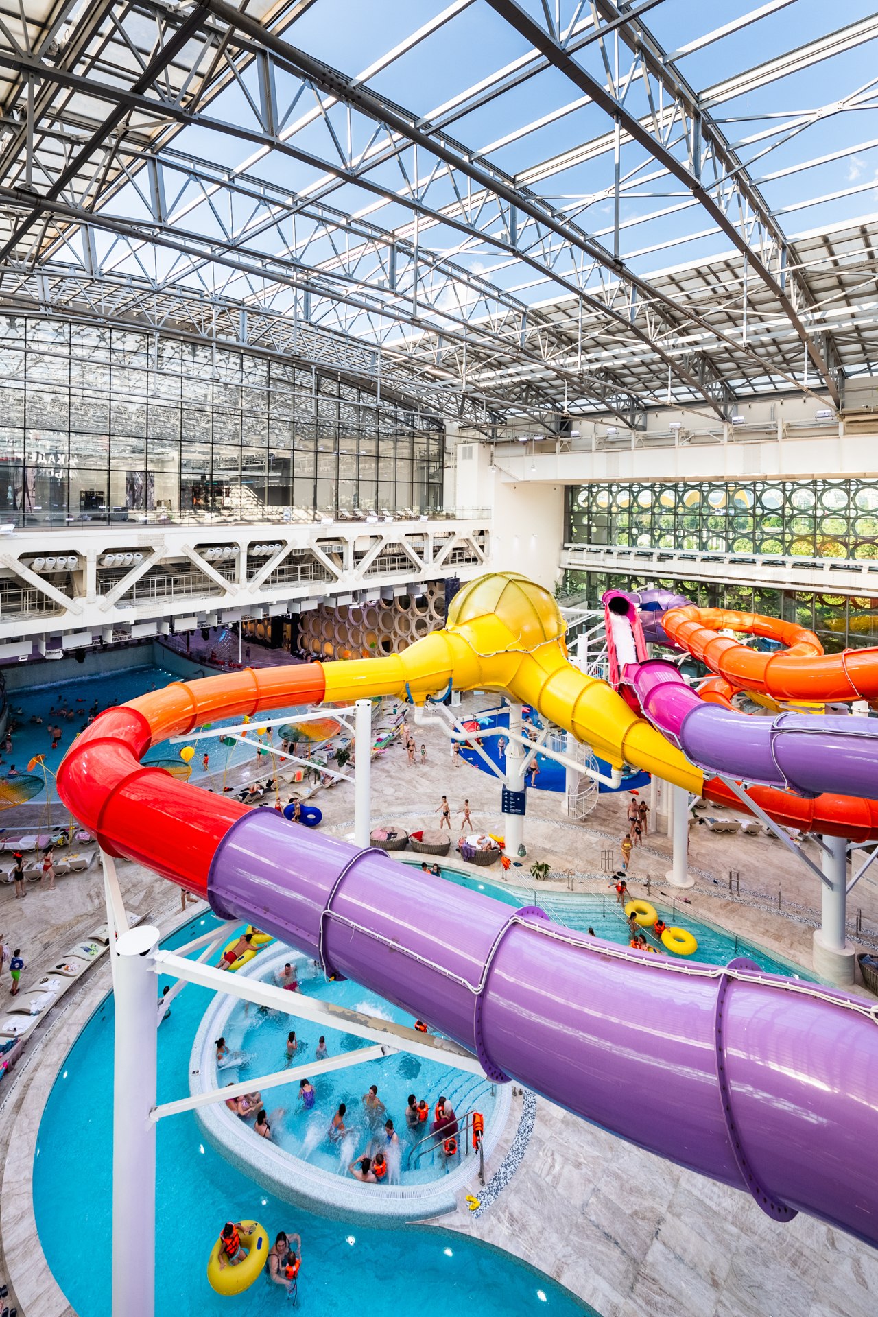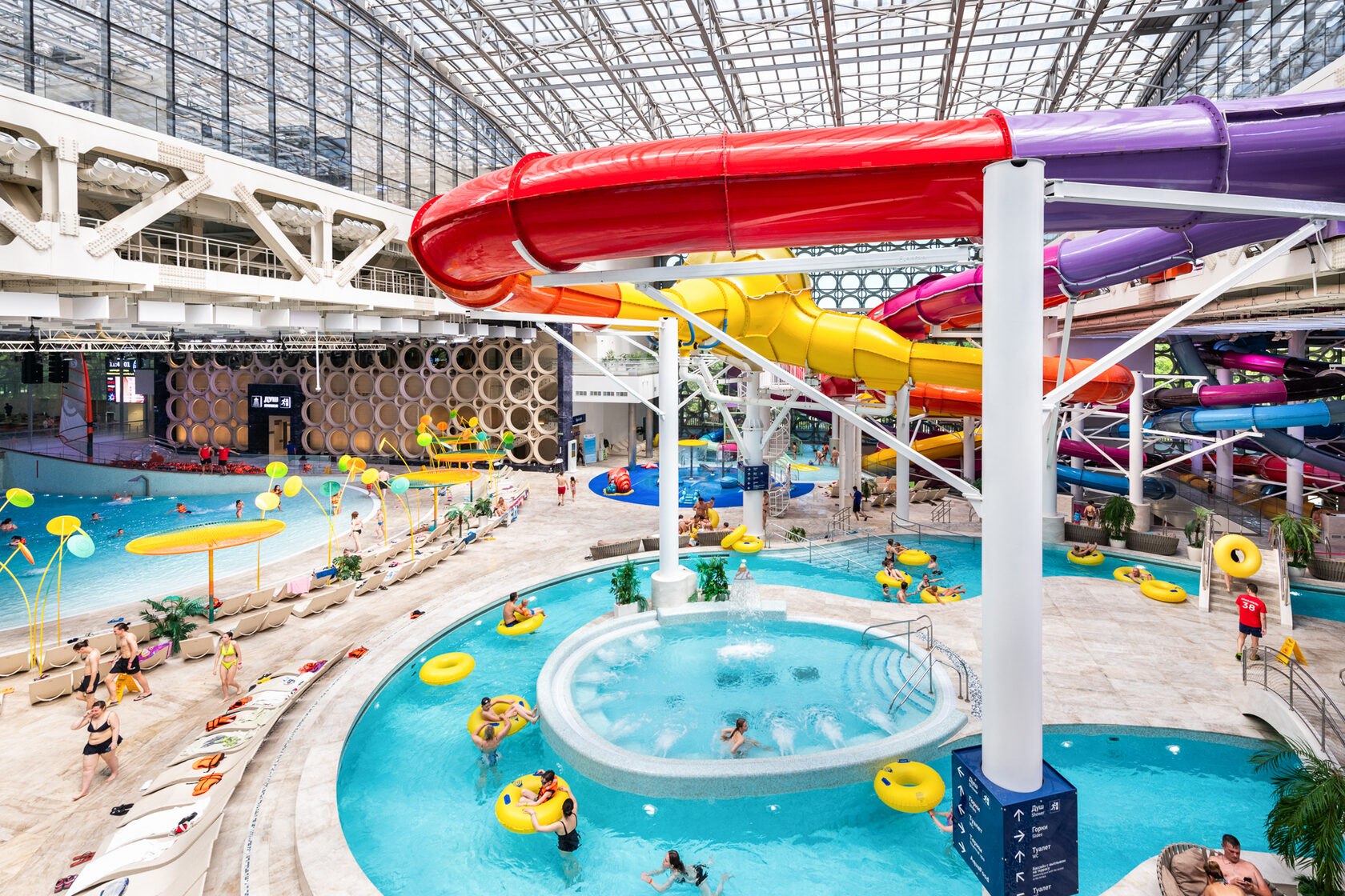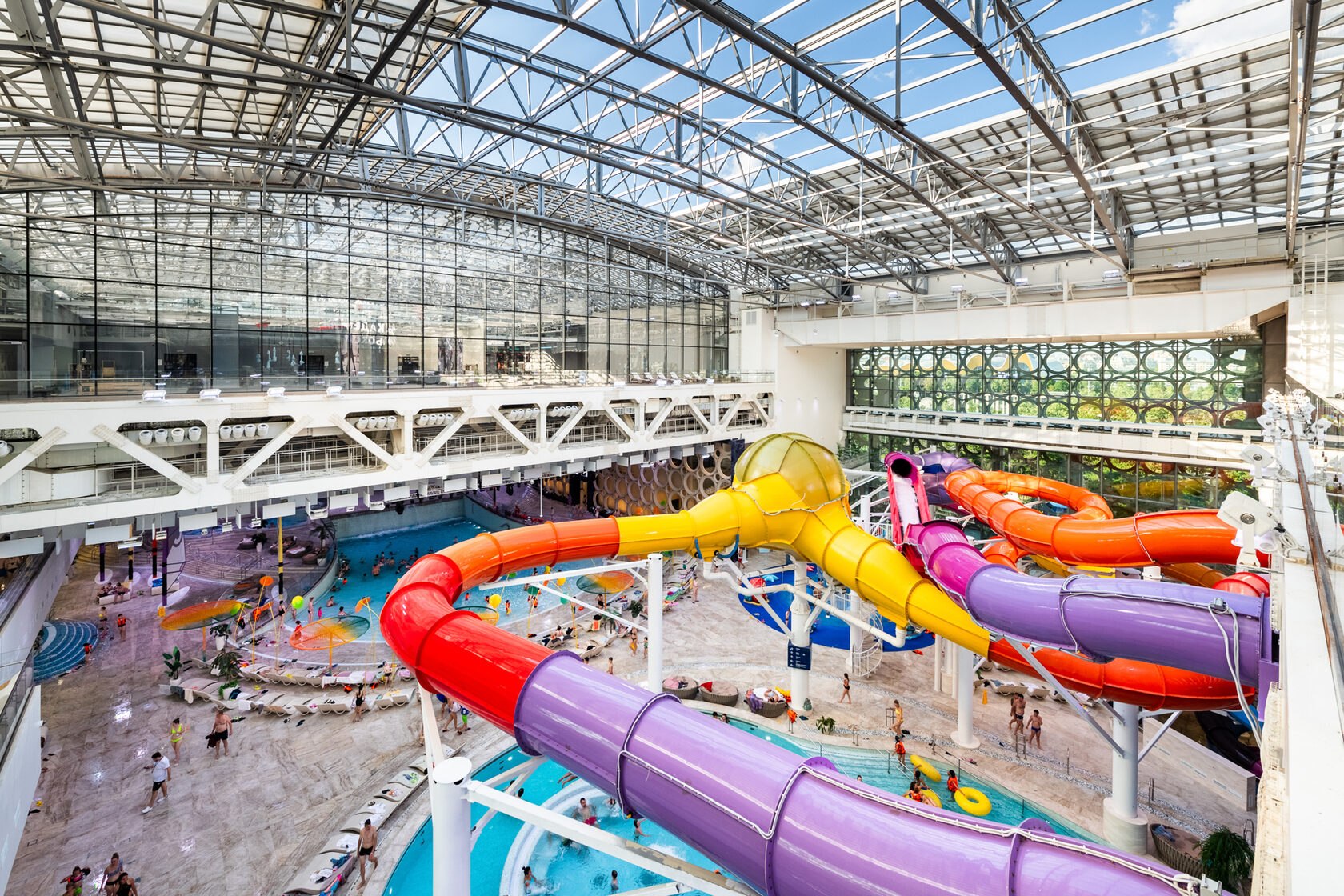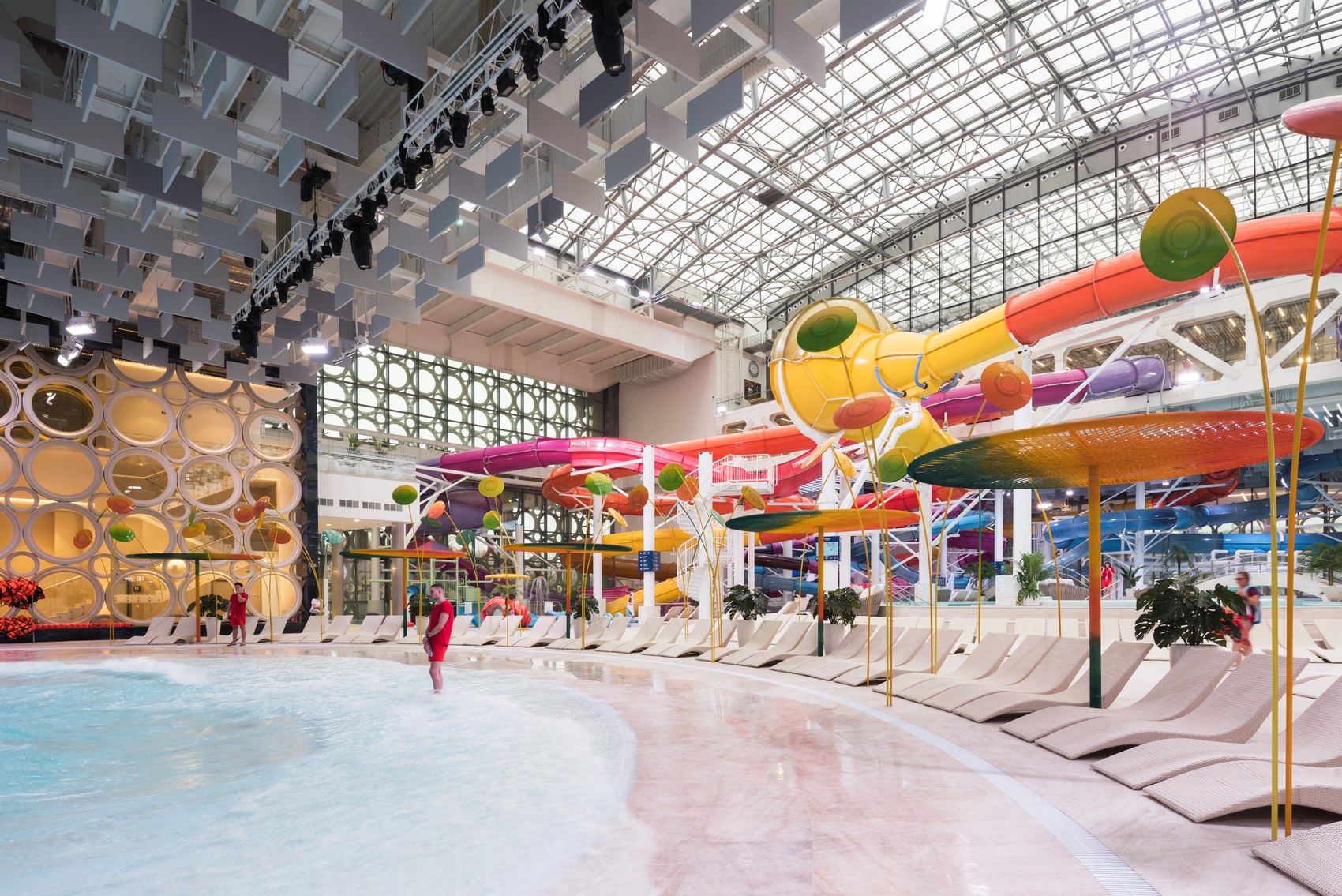 В Москве есть аквапарки и есть открытые бассейны, но только в одном комплексе удалось совместить широкий спектр водных развлечений, спа-процедур и занятий водными видами спорта с возможностью принимать солнечные ванны под открытым небом, и произошло это благодаря использованию поликарбоната в качестве покрытия для раздвижной кровли над Дворцом водных видов спорта в Лужниках.