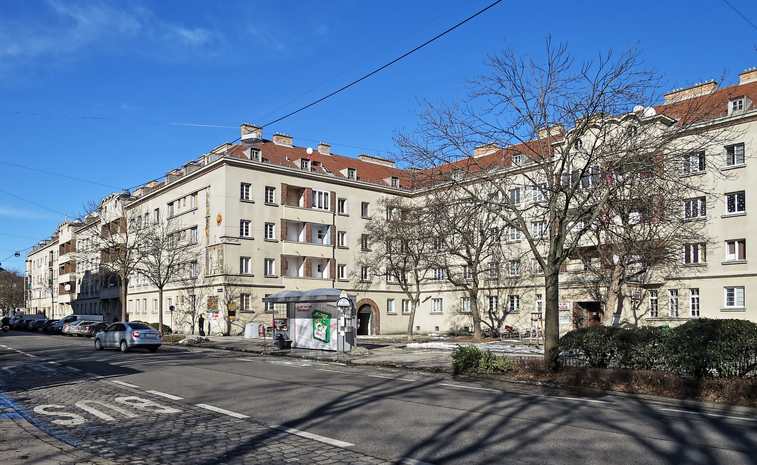 Гётехоф – один из крупнейших комплексов муниципального жилья, построенный в 1928-1930 годах в рамках программы «Красная Вена». Этот термин закрепился за австрийской столицей в межвоенный период (1918-1934), когда социал-демократическое правительство массово строило доступное жилье для рабочих.