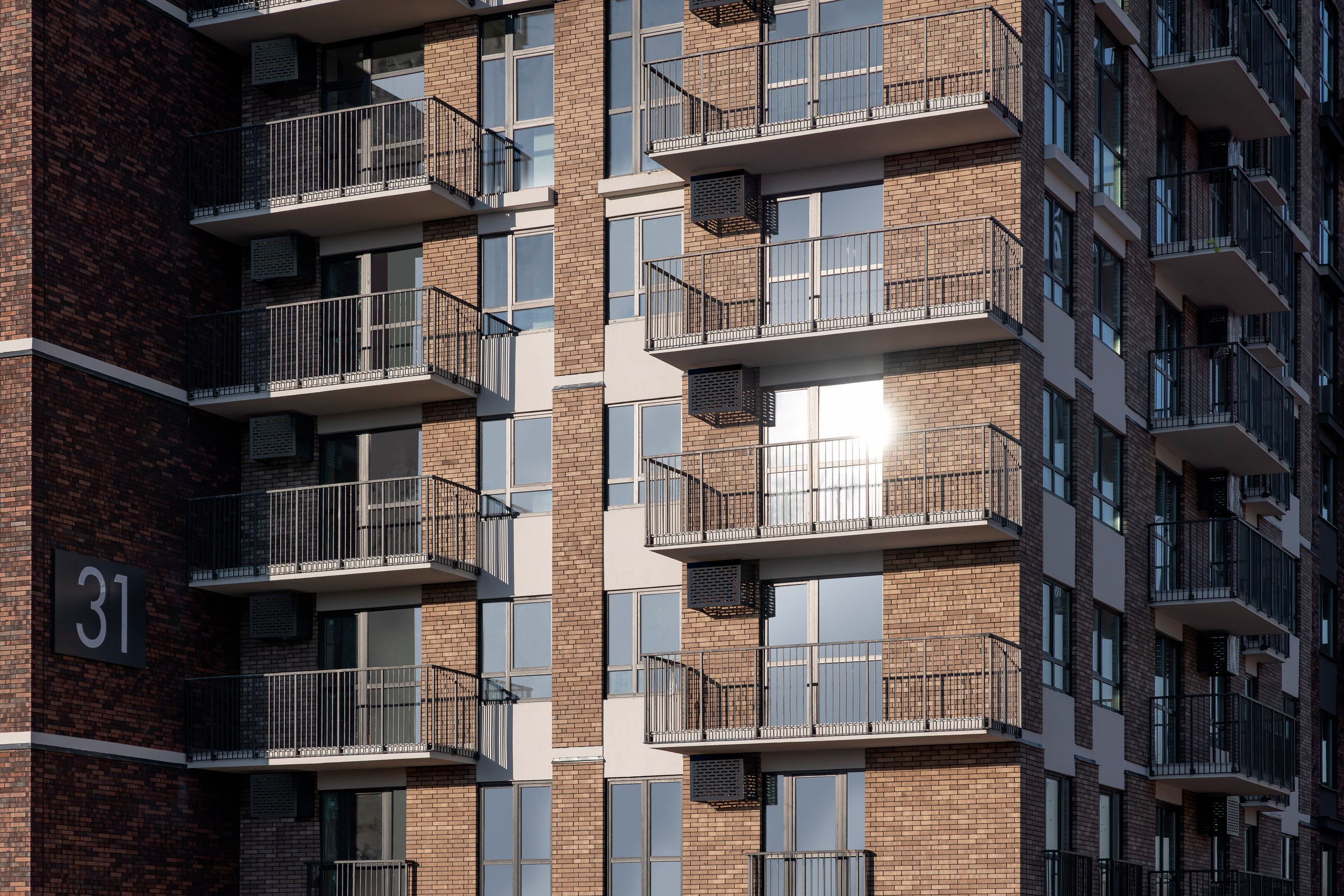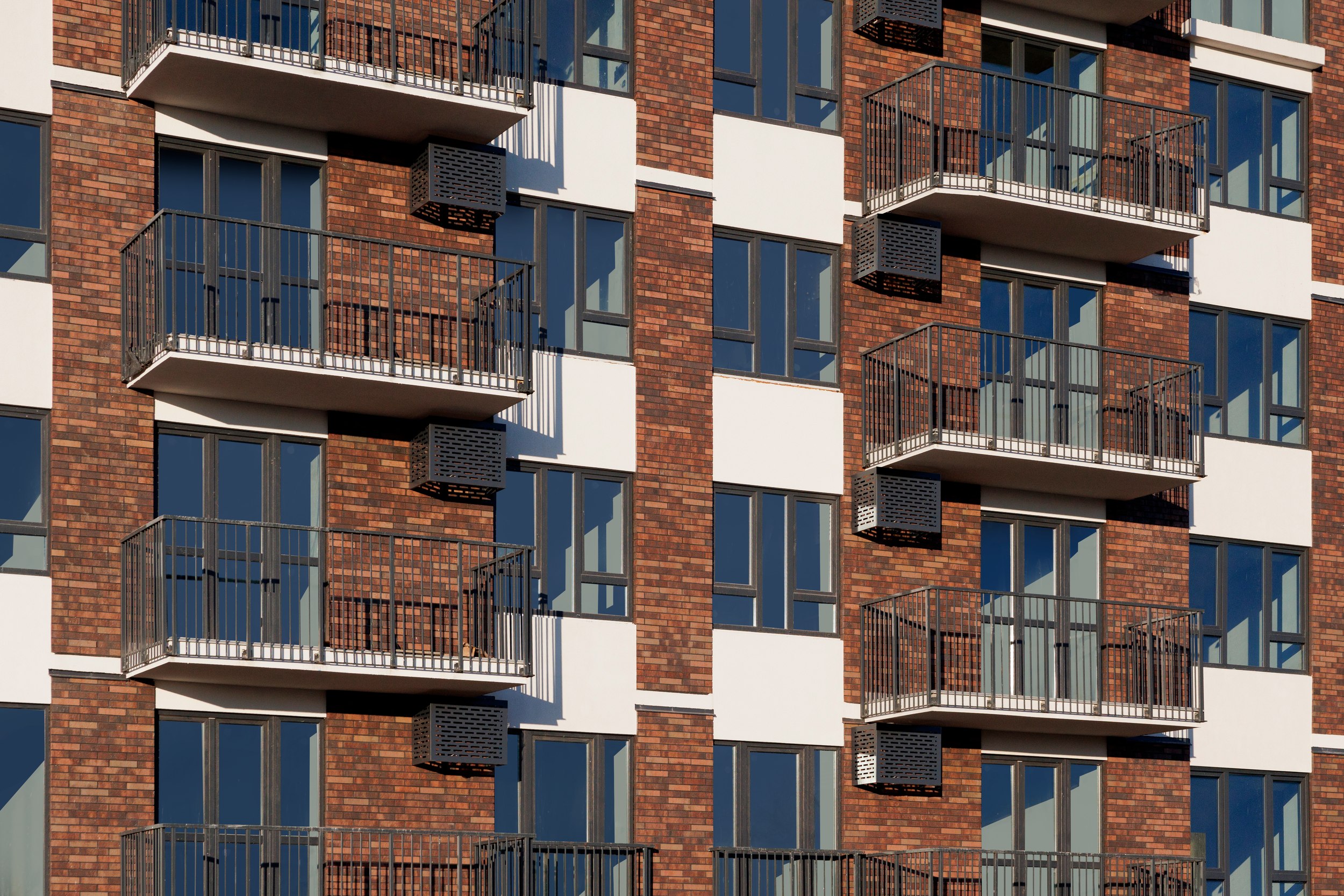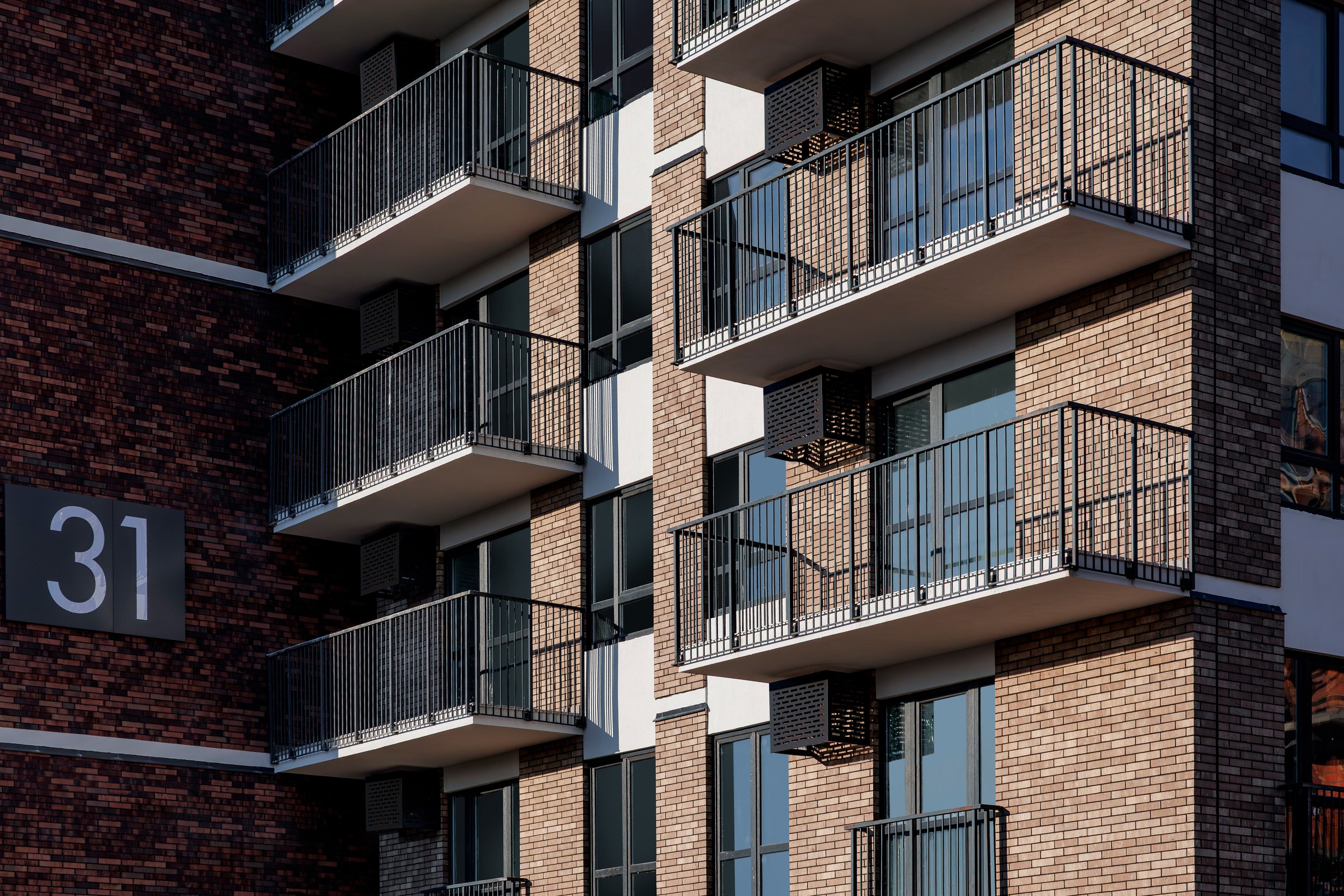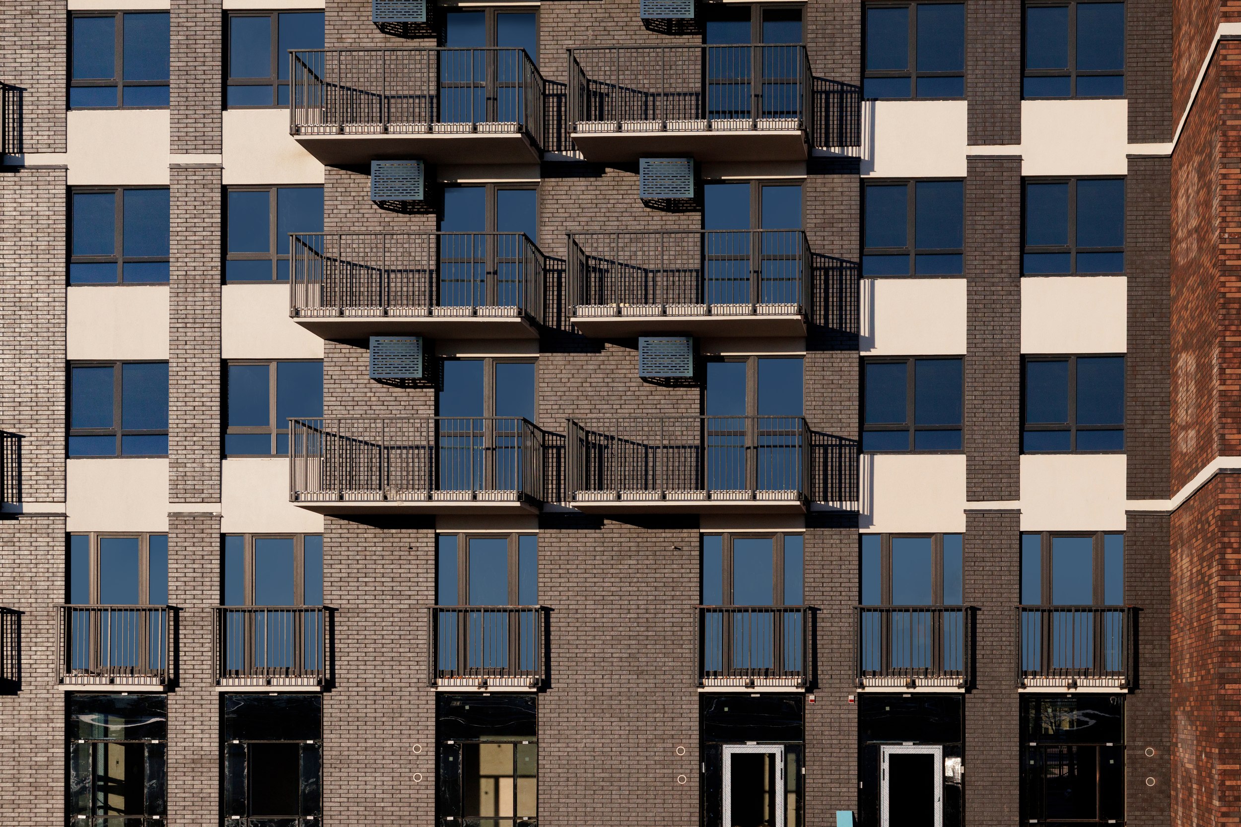 Террасирование применено точечно – как приём, увеличивающий количество квартир с хорошим видом и одновременно разбивающий массив кирпичного объёма. Открытые балконы вместо остеклённых лоджий – осознанная позиция. Балкон освобождён от хранения вещей: в планировках большинства квартир предусмотрены гардеробные и кладовые в прихожих.
