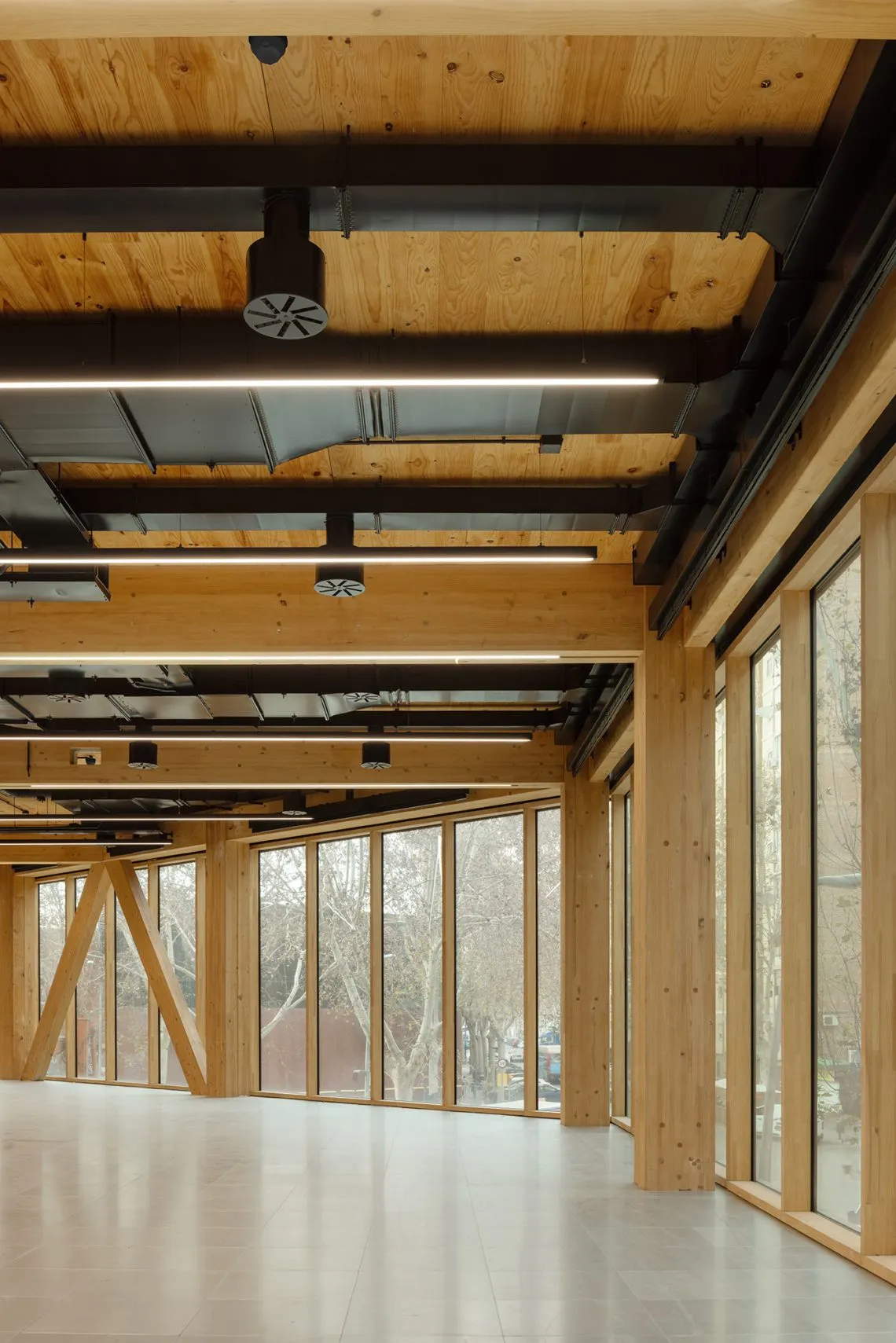 Учитывая перегретую экологическую повестку, для победы в этой номинации требуется нечто экстраординарное. Жюри остановило свой выбор на большой корпорации, которая транслирует важность снижения углеродного следа. Пятиэтажное офисное здание с сертификатом LEED Platinum – первый проект Google, построенный преимущественно из дерева. Балки и колонны из клееной древесины, а также CLT-панели оставлены открытыми по всему интерьеру. Четырехметровые консольные плиты, которые обеспечивают террасы тенью, реализованы благодаря дерево-бетонной конструкции и жестким соединениям. Фасады, в которые встроены жалюзи и система климат-контроля, ограничивают перегрев помещений и снижают расходы на электроэнергию.