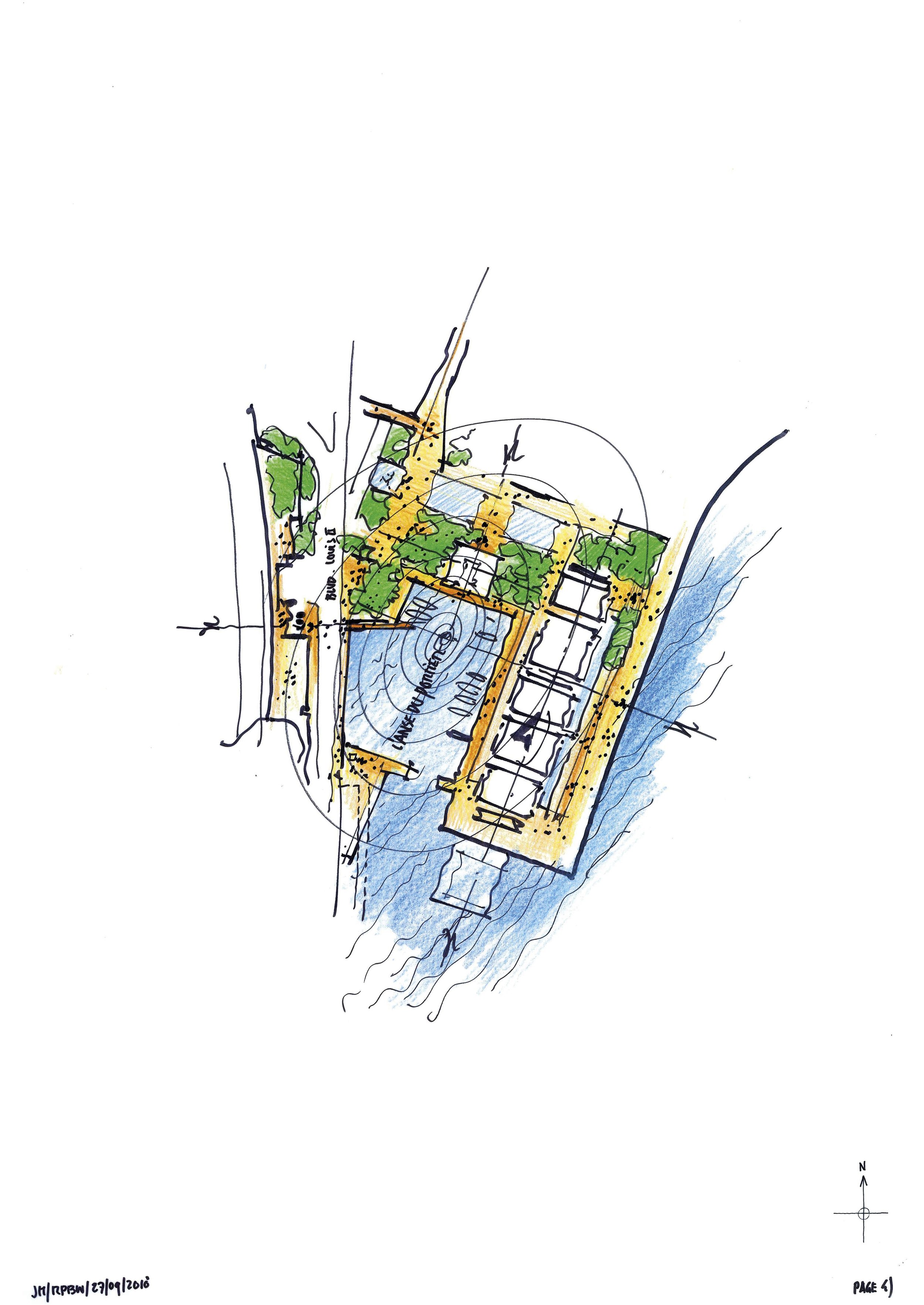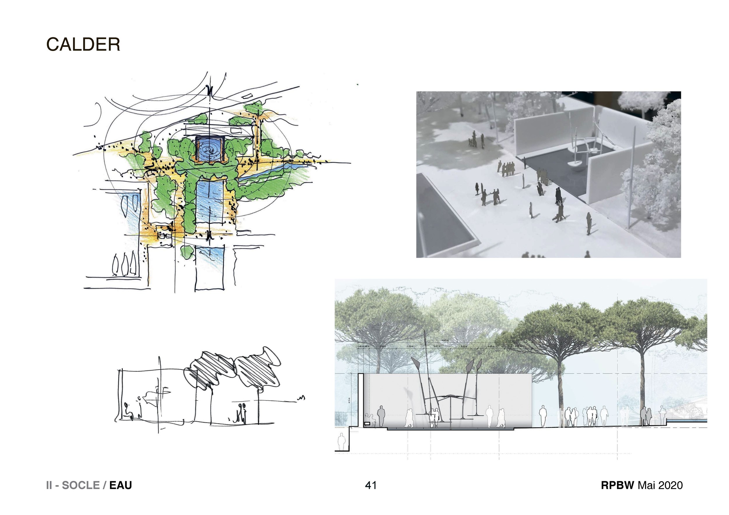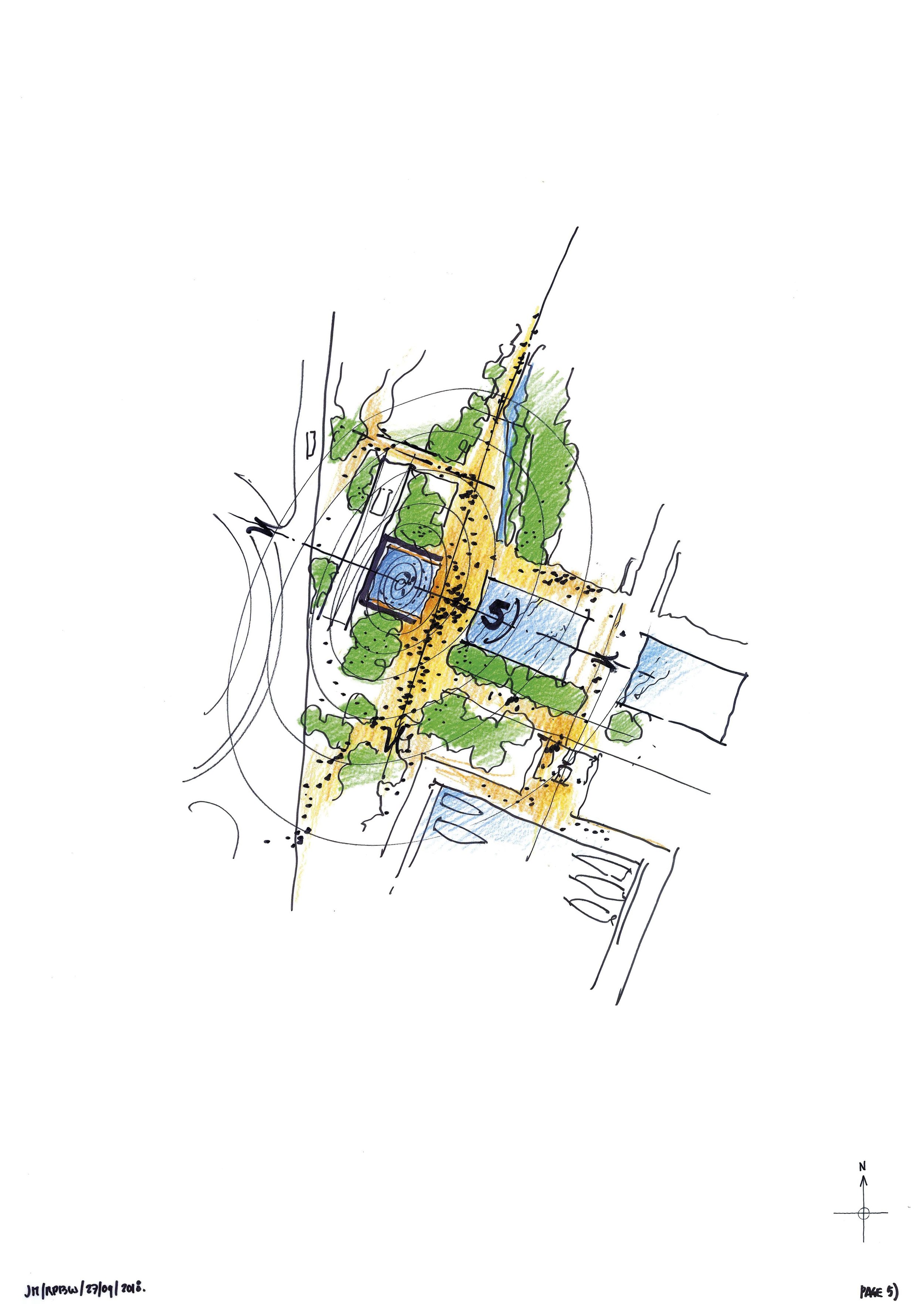 Кроме того, вдоль границы с северной территорией архитекторов VPA выстроены три прямоугольника встроенных в мощение прудов, предназначенных для сбора дождевой воды, так же как и усложнения пространства площади и «замедления» пешехода.