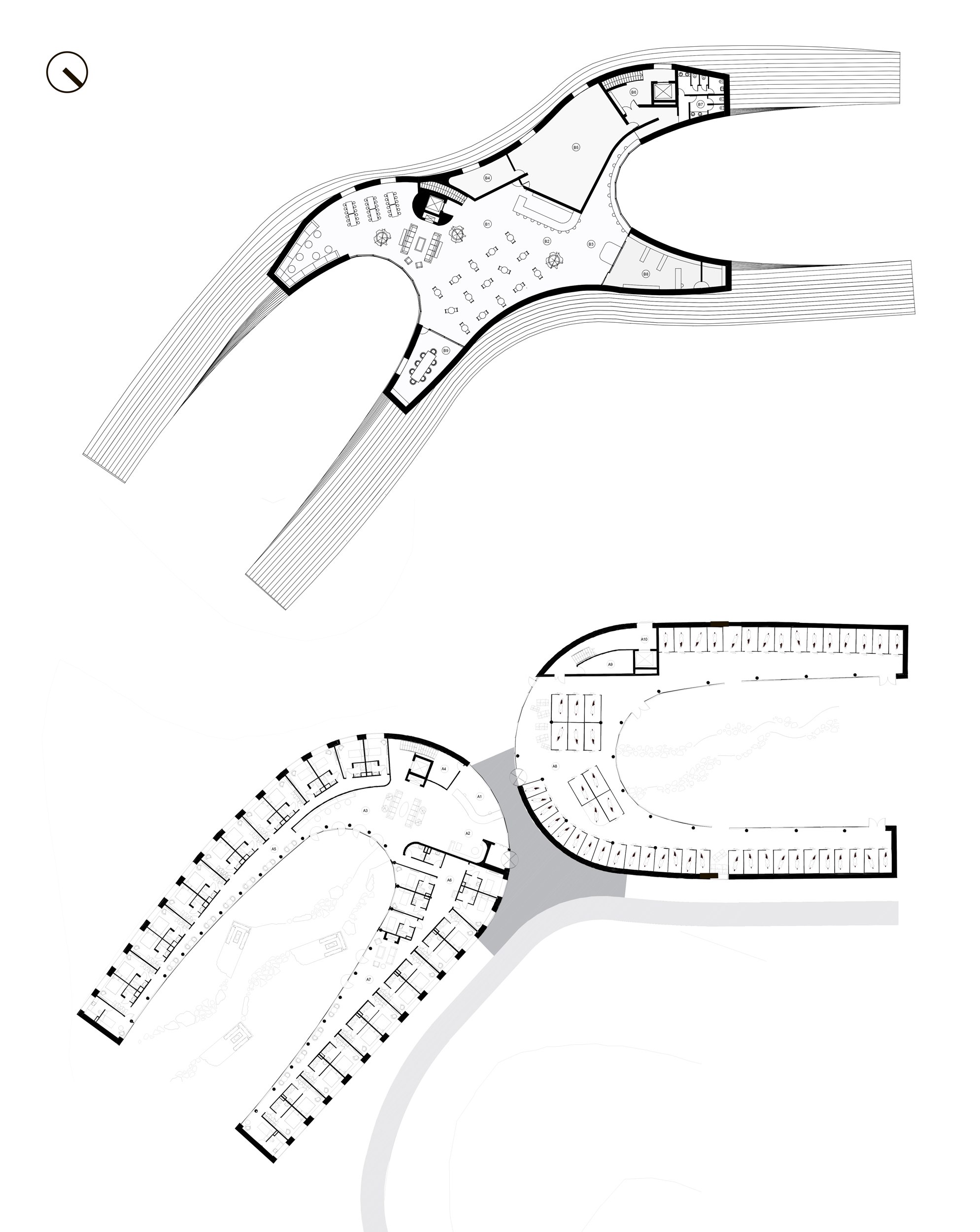 Отель на вулкане в Исландии . Формообразование – поэтажные сечения