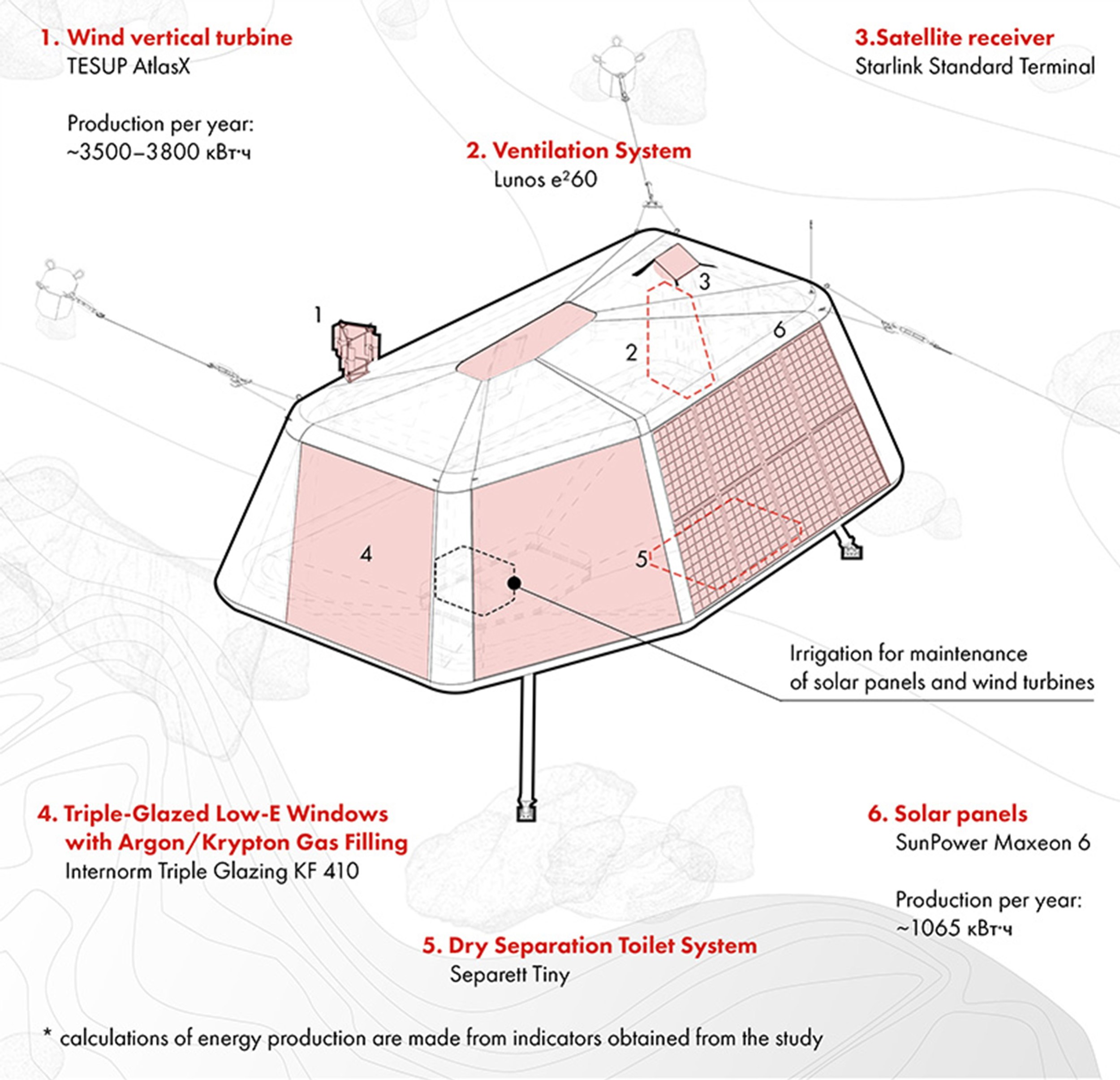 После завершения конкурса проект был дополнительно доработан и развит как исследовательская архитектурная работа, посвященная формированию типологии автономных высокогорных укрытий.