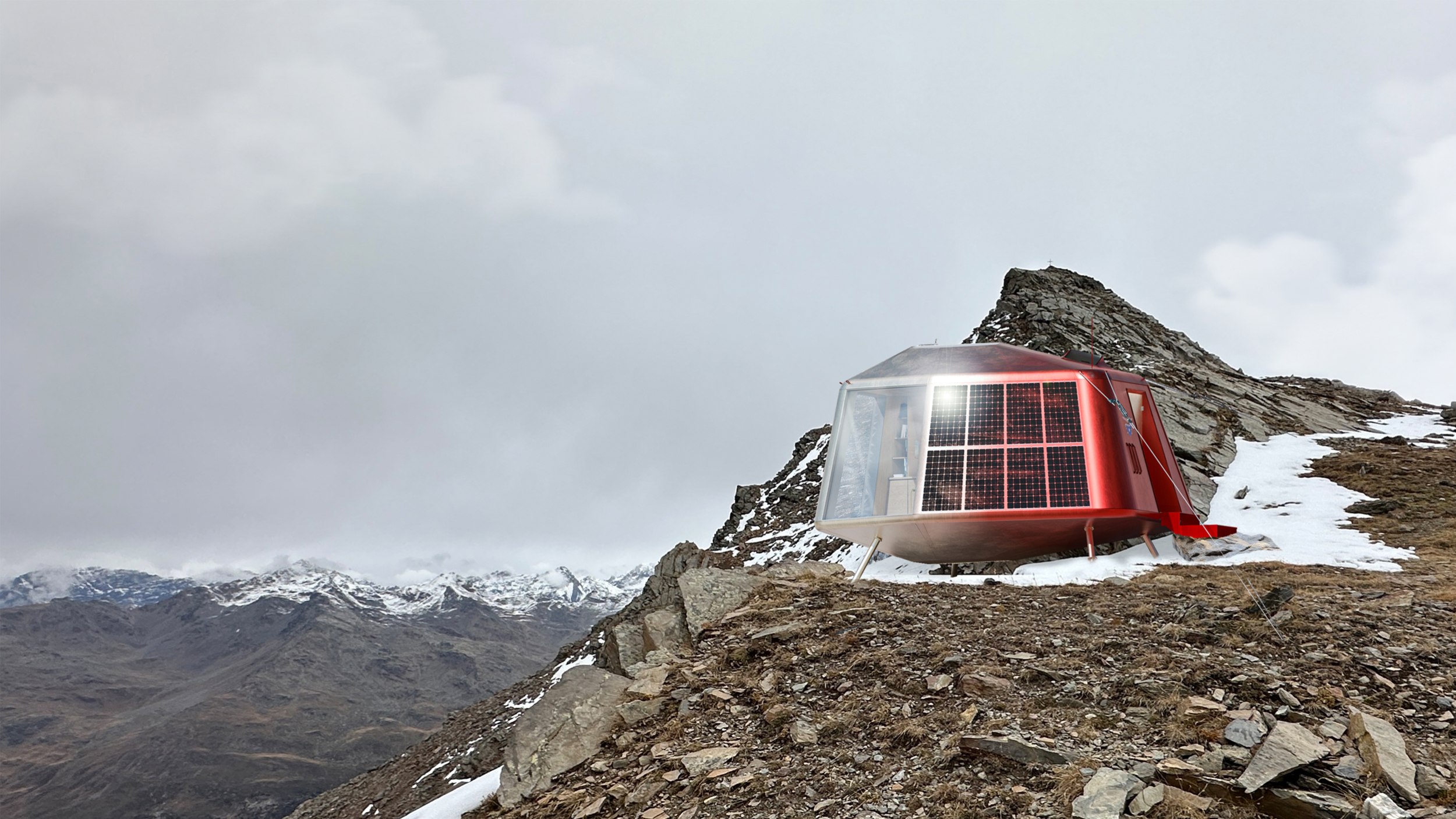 Конструкция основана на легком стальном каркасе с утепленными алюминиевыми сэндвич-панелями, что снижает общий вес и позволяет транспортировать элементы вертолетом. Монтаж возможен в течение одного дня с минимальным воздействием на окружающую среду. Цветовое решение – переход от яркого альпийского красного к светлому металлическому оттенку – улучшает видимость объекта для спасательных служб и одновременно вписывает его в ландшафт.
