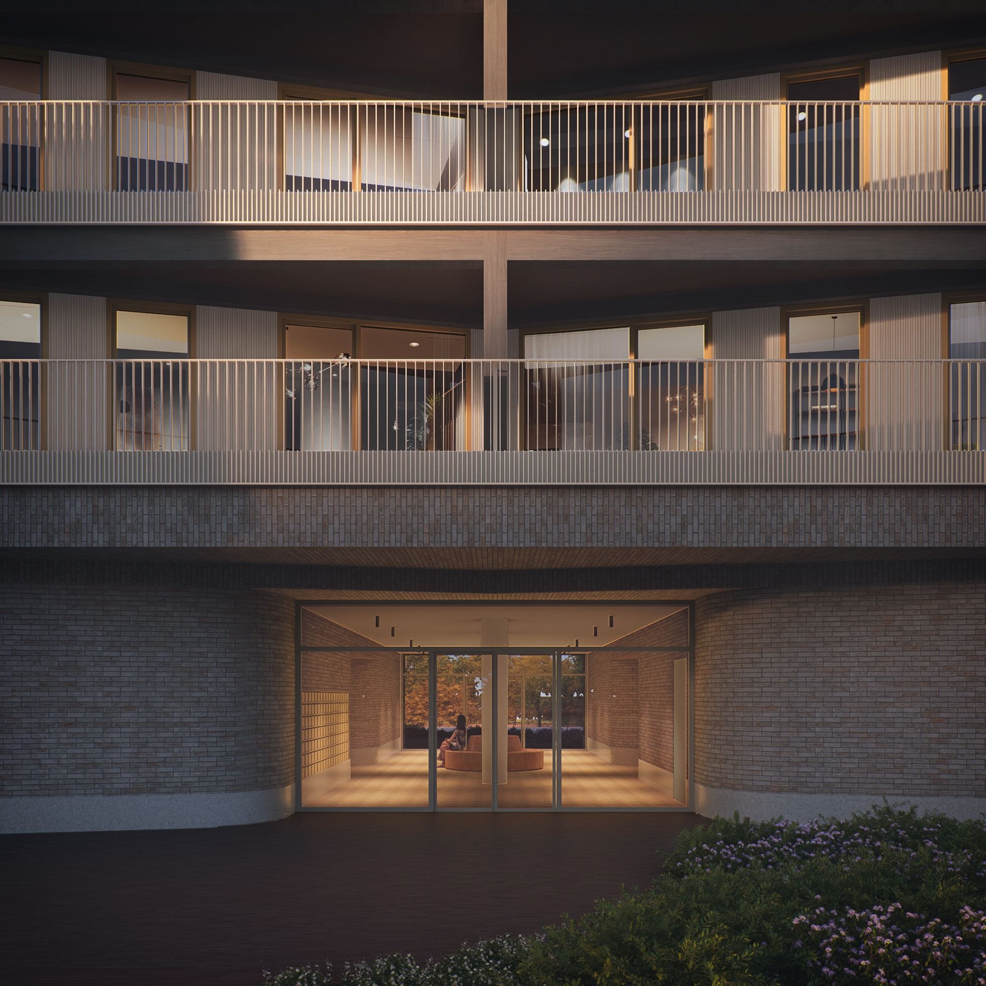 Стекло и кирпич снаружи скроют по преимуществу деревянную несущую конструкцию. Из бетона возведут лишь подземный гараж на 25 машиномест и первый, коммерческий, этаж, а остальные семь – собственно жилых – получат открытый в интерьер каркас из инженерного дерева. Архитекторы считают, что этот материал поможет создать психологический комфорт и снизит стресс жильцов своей теплотой, тактильностью, стимуляцией органов чувств. Схожую роль сыграют балконы, расширяющие жилое пространство квартир.
