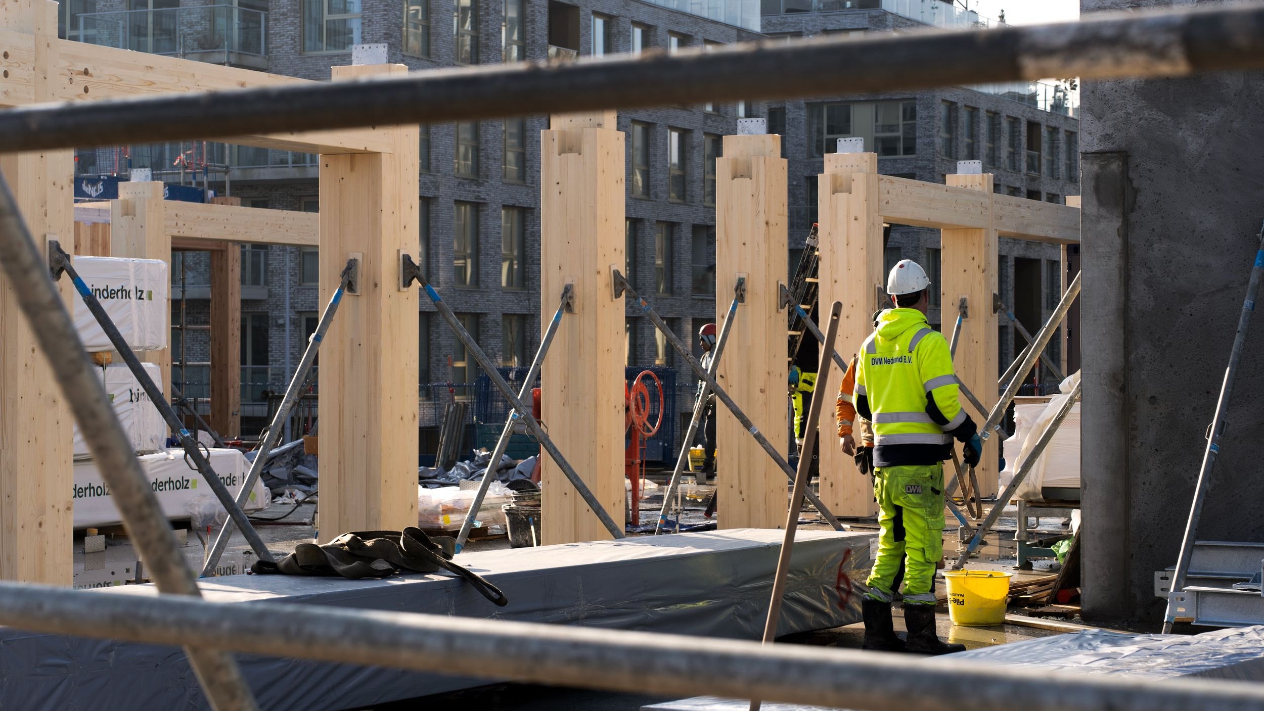 В Амстердаме строится многоквартирный дом The Ark с почти полностью деревянной конструкцией. Авторы проекта – Powerhouse Company.
