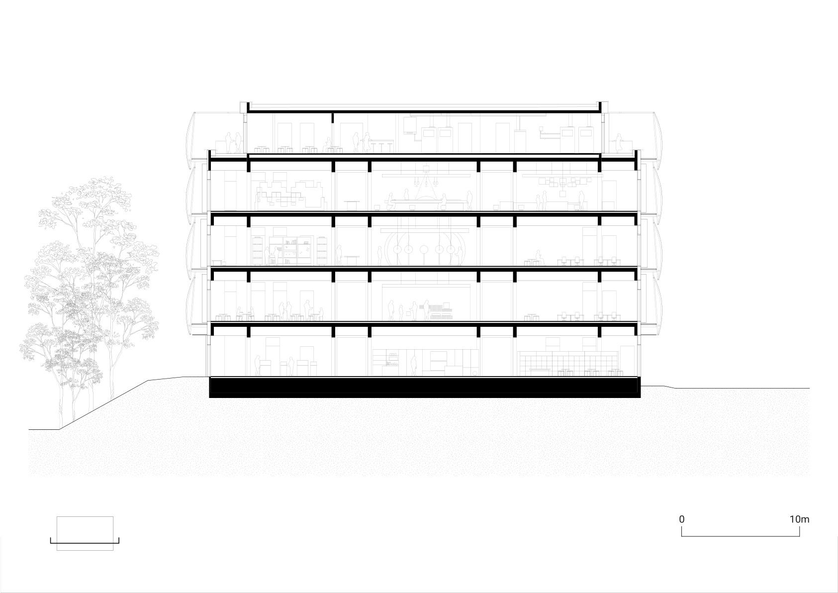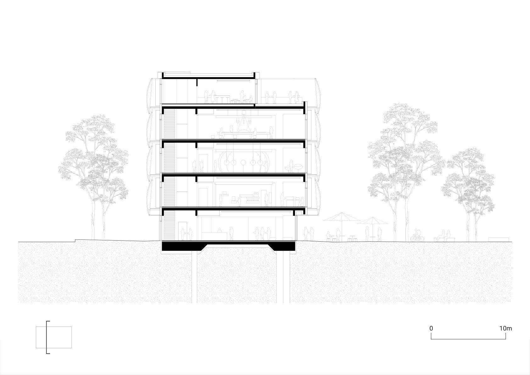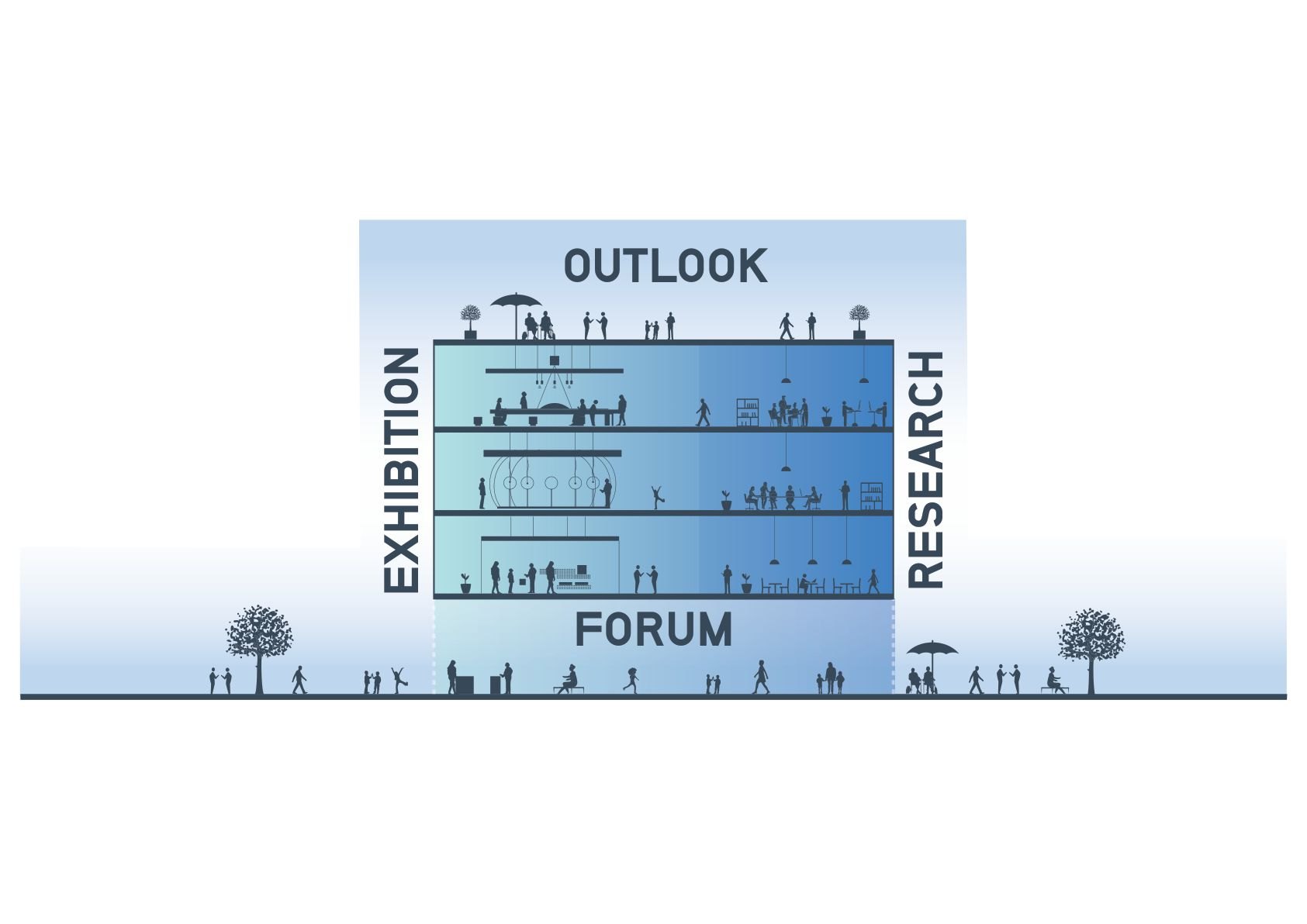 Кабинеты исследователей и администрации займут пространства на экспозиционных этажах, а самым верхним уровнем станет терраса на крыше, открытая для сотрудников и посетителей. Там также разместятся инженерные системы и солнечные батареи.
