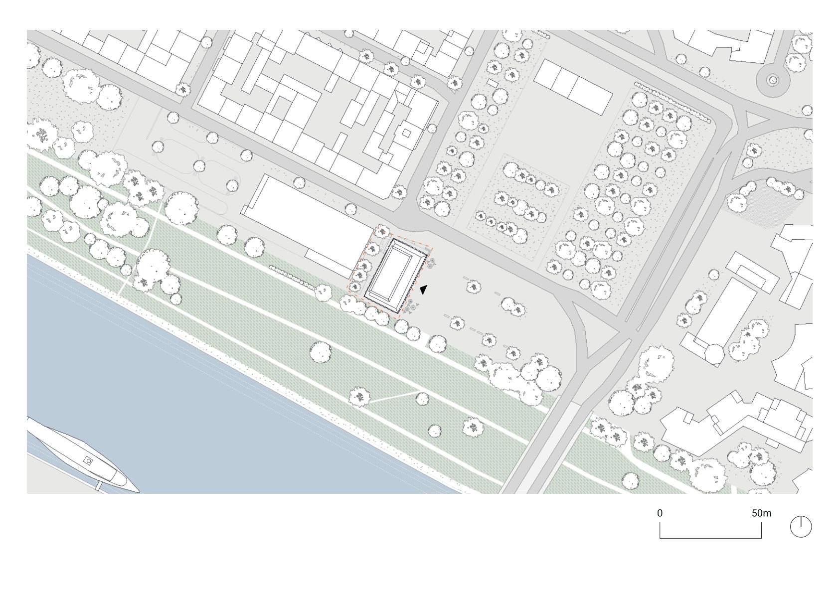 Форум расположится на площади Альтер-Мессплац, в районе Неккарштадт – через реку Неккар от центра Мангейма. Постройка будет одновременно ориентирована на площадь (с ее стороны появится доступная публике зона для пикников) и на воду, тем более что зеленая полоса вдоль реки сейчас благоустраивается. Так, именно на Неккар будет обращено остекленное пространство первого этажа для временных выставок, литературных чтений и «научных слэмов».