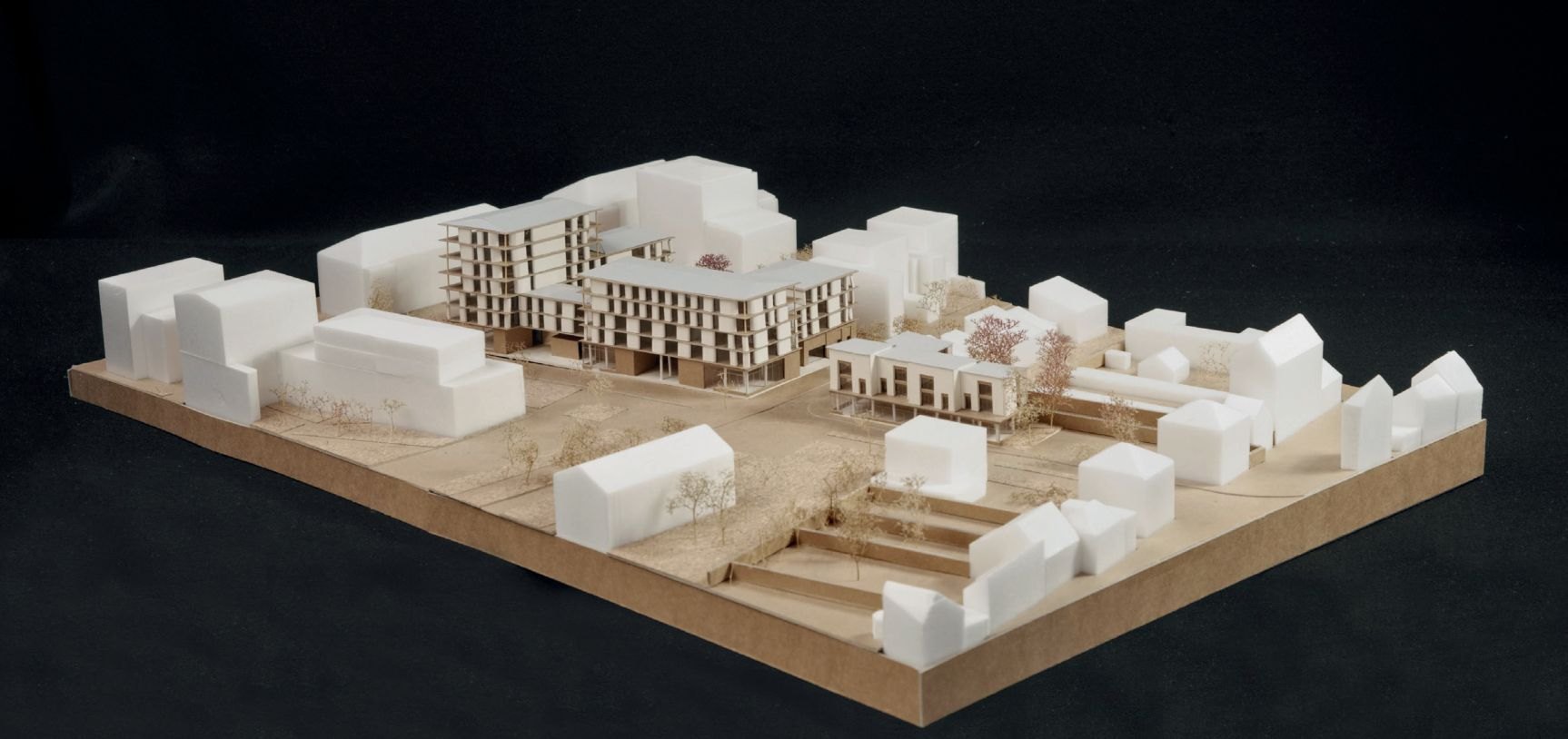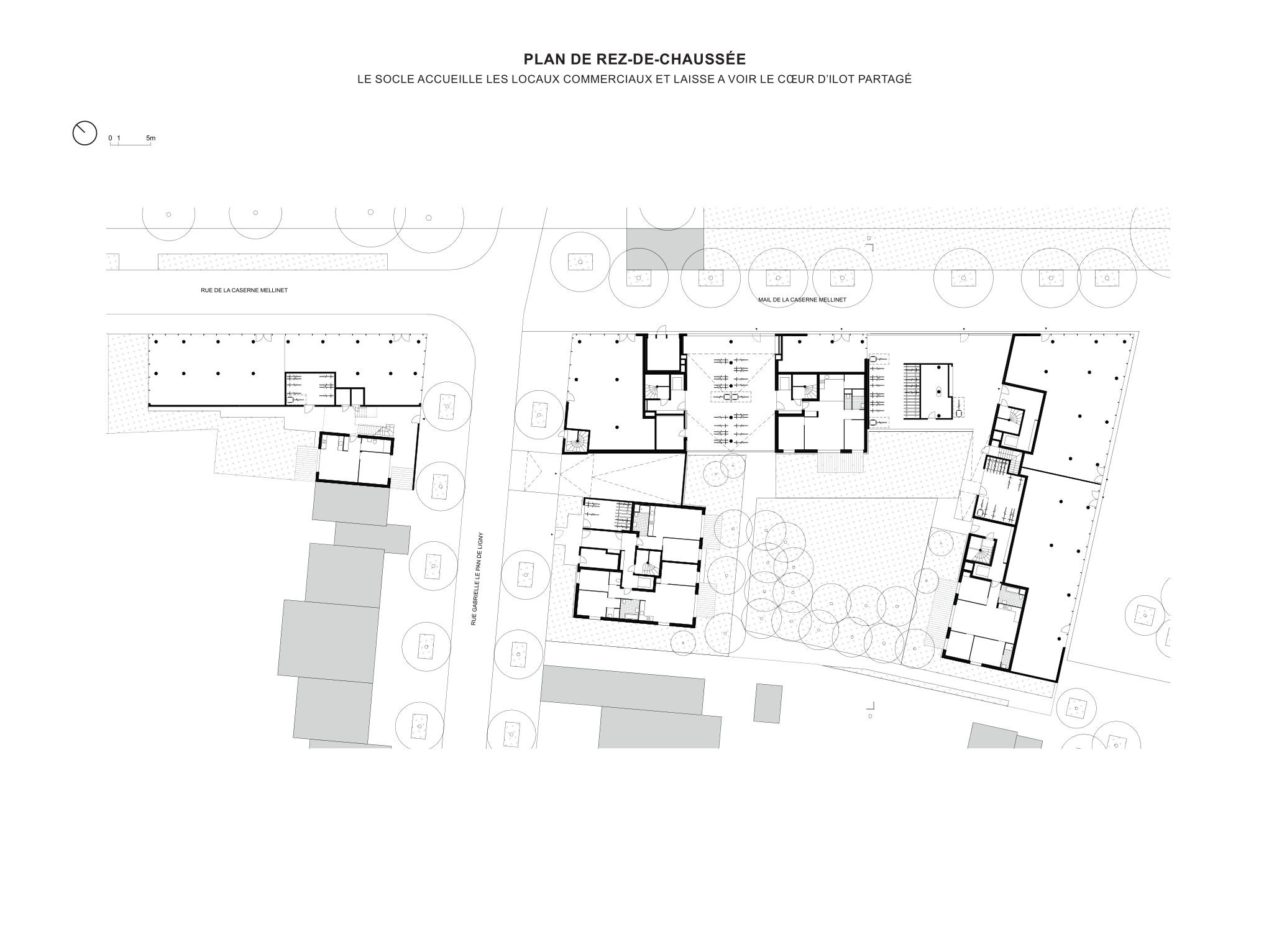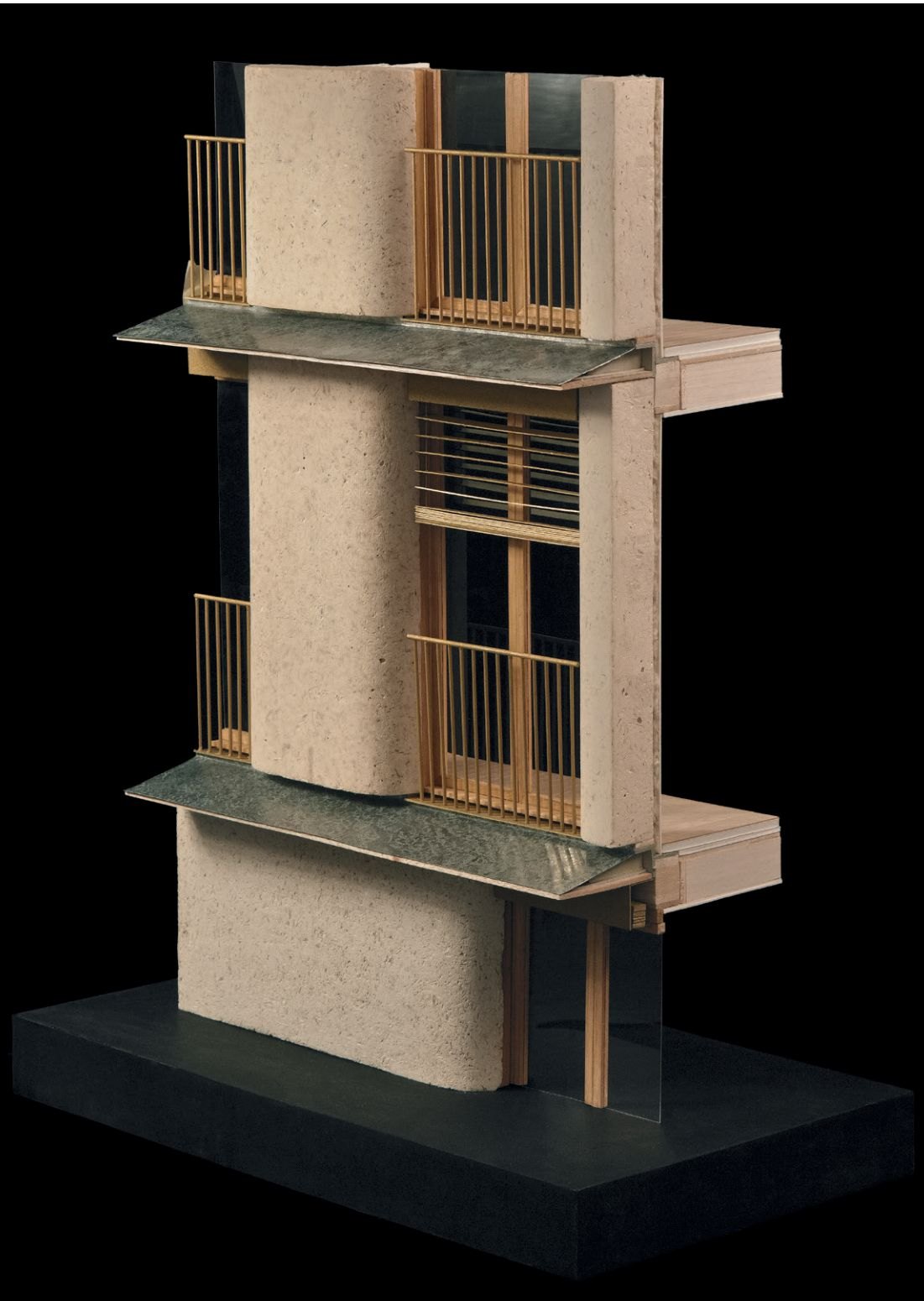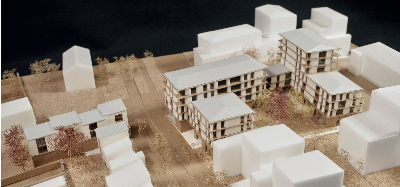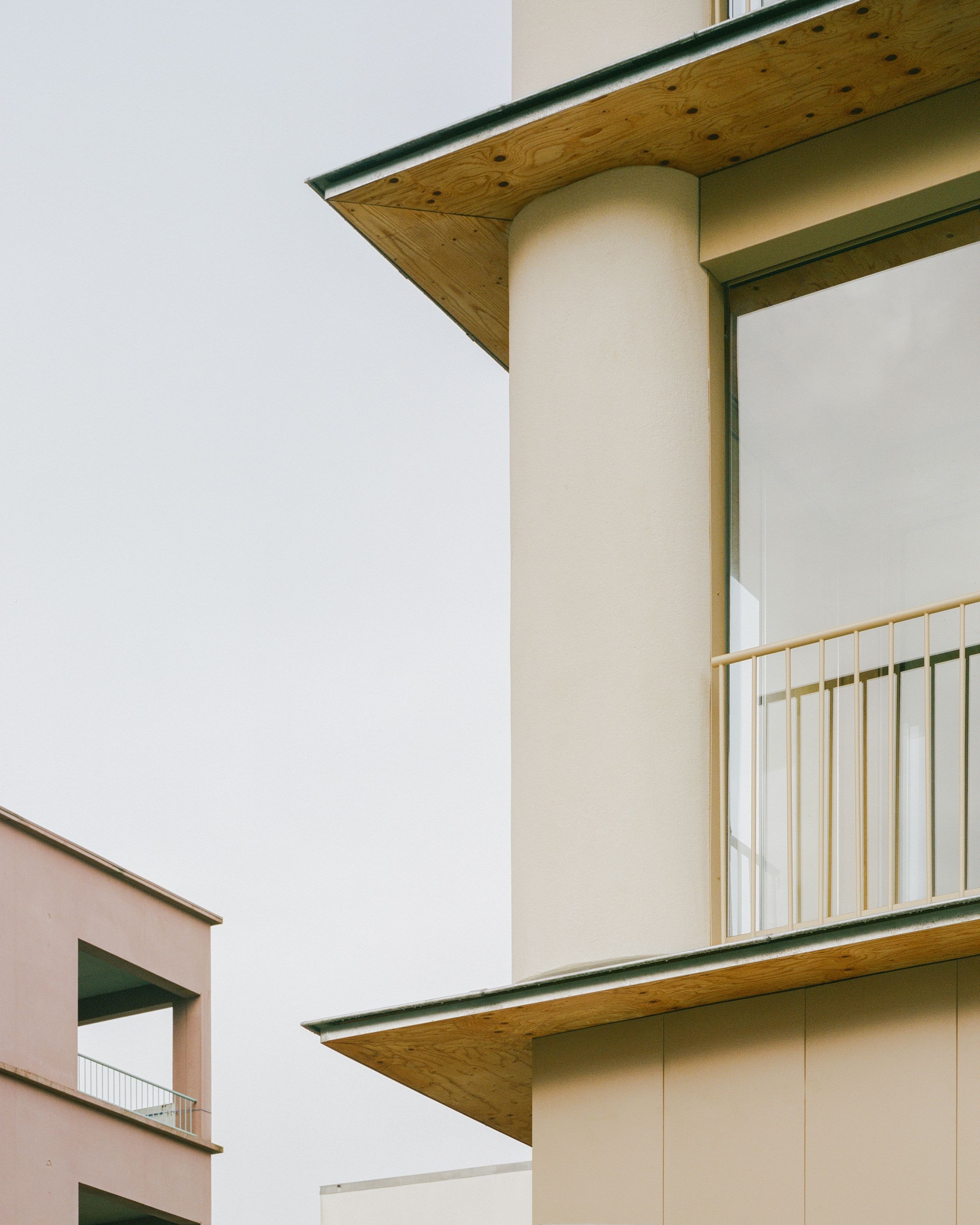 Подземный гараж, первый этаж и лестнично-лифтовые узлы выполнены из обычного бетона, остальная конструкция возведена из инженерного дерева. Архитекторы особое внимание уделили обильному естественному освещению и сквозной вентиляции квартир. Жилая площадь составляет 5247 м2, еще 800 м2 охватывают общественные первые этажи с остекленными окнами-витринами. Бюджет проекта – 14,5 млн евро.