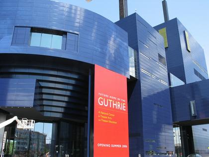 Обшитое синей сталью сооружение возвели на берегу Миссисипи, среди масштабных старых элеваторов и мельниц. Расположенный в бывшей промышленной зоне, сейчас постепенно превращающейся в район элитного жилья, недалеко от высотных зданий центра города, театр в своем формальном решении согласован как с индустриальным прошлым окружающих кварталов, так и с их гламурным будущим. Взаиморасположение основных объемов напоминает о промышленных постройках, но внутренний и внешний декор сделан намеренно роскошным. Театр Гатри